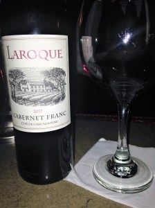 My Bride and I arrived quite a bit early, because we weren’t sure how long the travel would be, because of the snow and the rush-hour traffic, but we made it there in good time, we would have walked the downtown are, but it was frigid that evening, so we went to the bar at the hotel instead, which worked for me. Naturally I wanted to look at the wine list and my Bride was going to attempt to rein in my zealousness of ordering, even though we were going to pick up the beverage tab as we were the only drinkers at the table. The bartender was telling me, how the owner of the restaurant prided himself on selecting all of the wines on the carte and it was not a cookie cutter grouping, there was a very well thought out selection of twenty-four bottles of wine from around the world and all reasonably priced, but the real surprise was that there was twenty-nine bottles world-wine that were all priced at twenty-one dollars each. Of course, I didn’t tell my Bride and when she heard that I was ordering a bottle of wine, she was ready to send daggers towards me, until I told her, that the bottle of wine that I selected was less than what we sometimes order by the glass. We were having a bottle of Domaine Laroque Cabernet Franc IGP Cite de Carcassonne 2017. The IGP classification replaced the old Vin de Pays to make France align to the other members of the Common Market. The IGP Cite de Carcassonne is a large area in the Languedoc region and encompasses eighteen communes and allows all three colors of wines. We were both happy with the wine, especially from the second glass on, as it opened up. There was not a big nose or any other exciting traits, but just a good honest bottle of wine that even surprised me. Since this is not far for the kids, we will probably be going back there again.