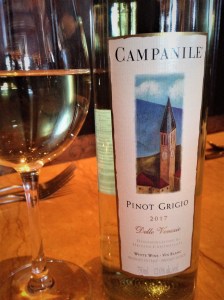 We may split a sandwich, but we will each have our own glass of wine, and why not, because they have a bar and a wine list. They are so big, they even have their own house labels, but we ventured off from that selection, but on one of our visits, we tried that as well. My Bride sometimes gets mad at me, because I want her to try something new, but she is happy going with something safe that she knows that she will enjoy. She enjoyed a glass of M. Chapoutier Belleruche Rosé Cotes-du-Rhone 2017. She enjoys a good Rosé wine and she has enjoyed the wines from the Rhone since her first glass. The Chapoutier family has been in the Rhone since 1808 and have transitioned from just a grower to a winemaker and a negocient, and a genuine force in the area and France; not to mention that they have holdings now in three other countries beyond France. They have also included Braille embossing on their labels for sometime now, since their estate in Hermitage was originally owned by the creator of the modern version of Braille. The wine is a blend of mainly Grenache, then Cinsault and Syrah. The wine is aged for three to six months in Stainless Steel and then bottled. It is a pleasant pink with a slight floral nose, and balanced enough to make it a very easy and drinkable wine that will pair decently with most dishes. I was looking for something light and easy as well and I chose a glass of Campanile Pinot Grigio Delle Venezie DOC 2017. While at first glance, it sounds like the wine came from the fabled canal laden Venice, but it is from the Three Venices, or Trivento in the Sud-Tirol region of Italy. Pinot Grigio has become such a major wine for Italy in sales and export, that IGT Delle Venezie became Delle Venezie DOC in 2017 and there are several varietals that can use this designation, by far Pinot Grigio is the leader. There is now a sub region for the district when the wine does not fit the requirements of Delle Venezie DOC and that is IGT Trevenezie.