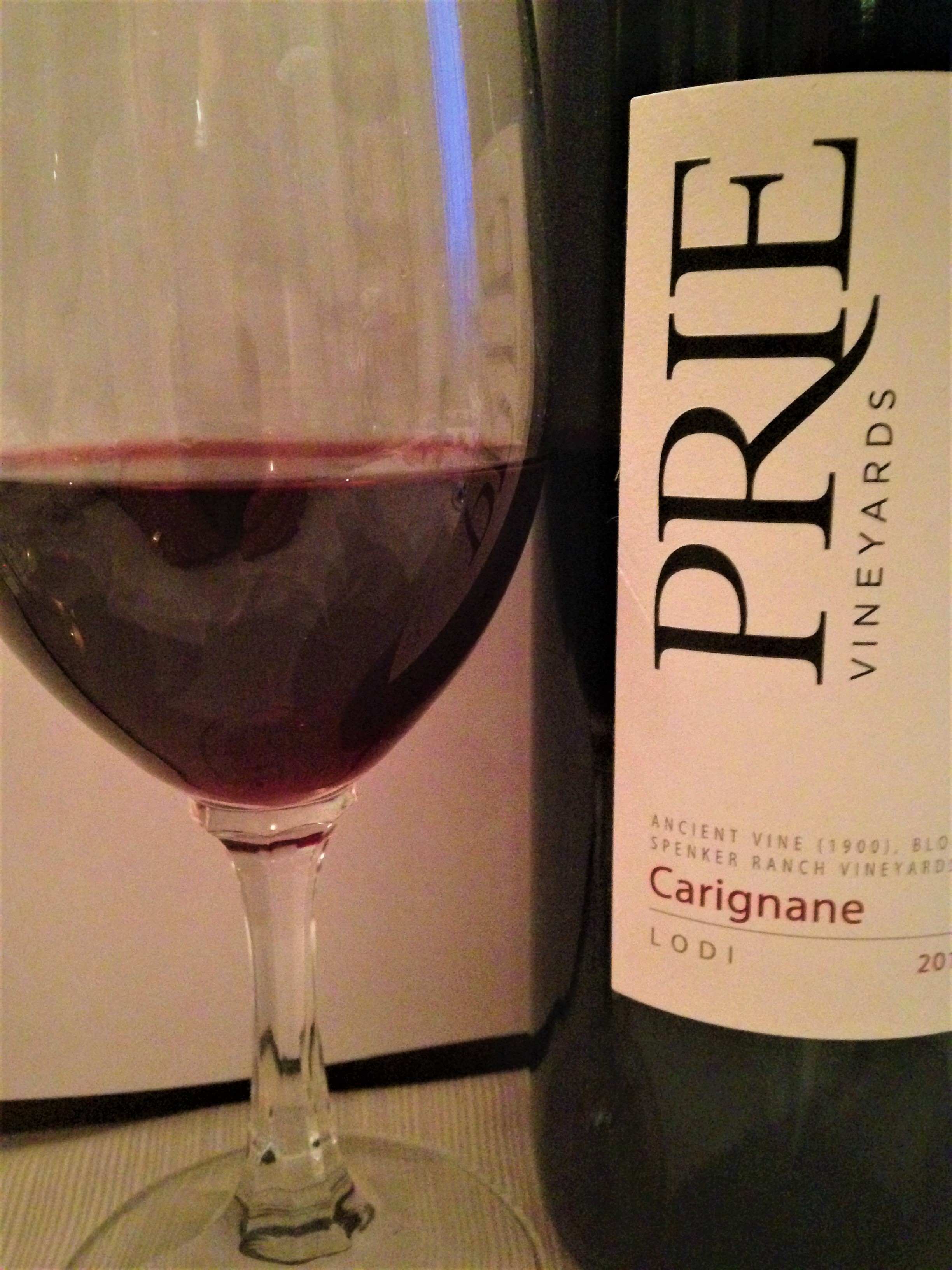The penultimate wine of the evening was Prie Vineyards Ancient Vine (1900) Block 4 Spenker Vineyards Carignane Lodi 2016. John and Lisa Gash were from Livermore, California and their first vintage was in 2005. In 2012 they purchased the Cliff Mettler house and vineyard and constructed the Lodi winery in 2013. The tasting room was built in 2015. Carignane is the California version for the grape known as Carignan or Carinena, Carignan Noir, Carignano, Mazuelo, Gragnano, Pinot Evara or Samso. The grape is native to the Aragon region of Spain and shines in the Priorat. The grape also does very well in the Languedoc-Roussillon. It has long been favored for blending and being harmonious with other grapes. Carignane is known for evoking dark fruits and pepper, so it is not surprising that it is described often as being spicy and savory. The wine had a good solid nose and I thought it was going to be really fruit-forward, but I found it very solid and balanced, with some cherry, some licorice and some pepper, the type of wine that I really like to “chew” as we used to say. I think this wine will sell out rather quickly, as there were only seventy cases produced.