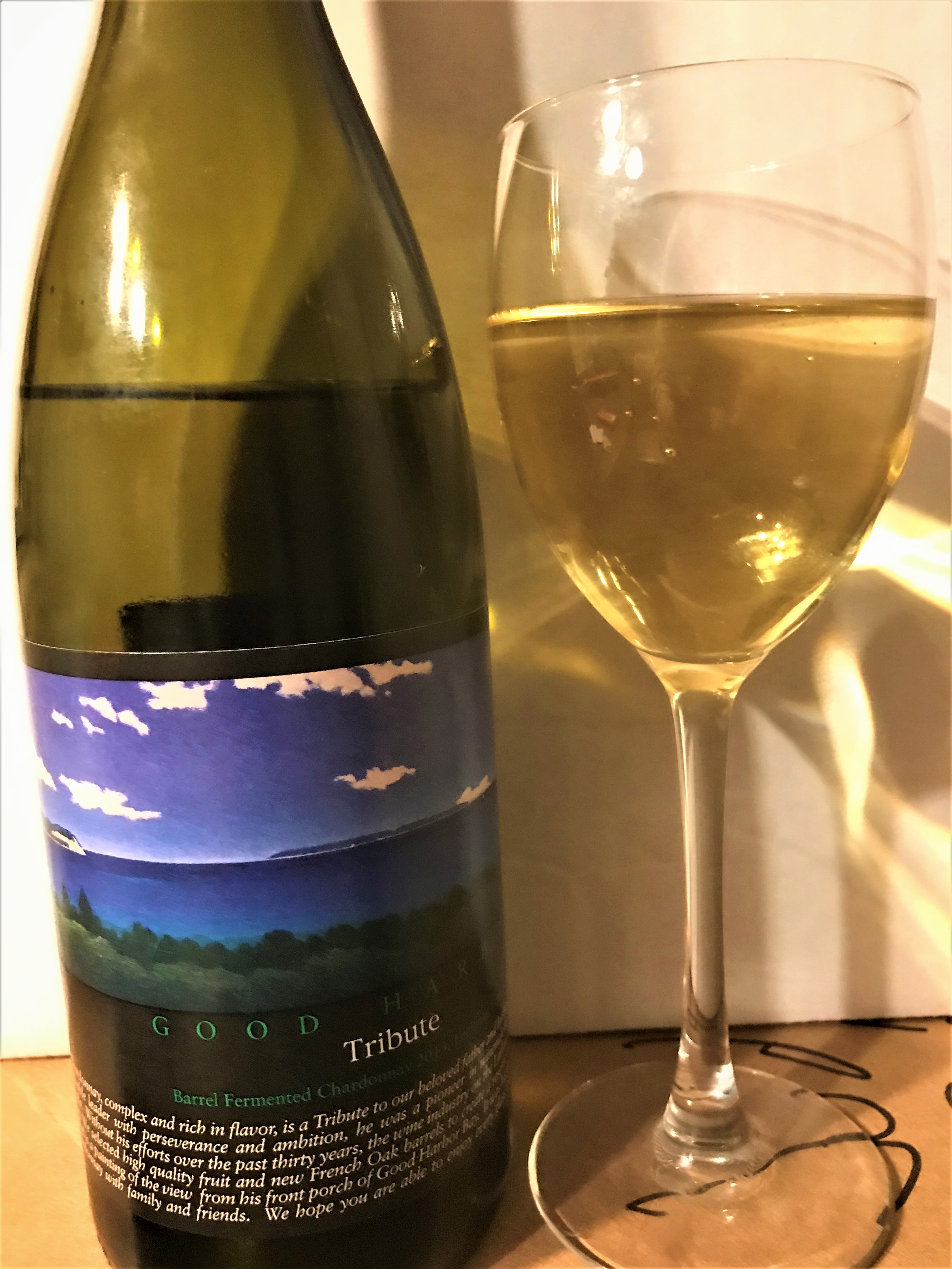 We finally reunited the boys with their Mother as they had someplace to go that evening and my Bride and I returned home, well fed, but tired.  I went into the refrigerator to get something to drink, since we were good guardians and I didn’t even have a beer with my Coneys at Lafayette   We had a bottle chilling of Good Harbor Vineyards “Tribute” Barrel Fermented Chardonnay 2013 from the Leelanau Peninsula in Michigan that we had received as a gift.  The Simpson family were originally in the cherry industry in the 1950’s in the Leelanau Peninsula.  In the 1970’s John Simpson sent his son Bruce to the University of California – Davis to learn about viticulture and oenology.  In 1980 Bruce and his wife Debbie opened Good Harbor Vineyards and they were the fourth winery established on the Leelanau Peninsula.  They now have one-hundred-twenty-five acres devoted to Riesling, Chardonnay, Pinot Grigio, Gruner Veltliner, Pinot Noir, Merlot, Pinot Blanc, Sauvignon Blanc, Zweigelt, Lemberger and Cabernet Franc.  The winery is now owned and operated by the second generation of Simpsons.  This wine was created as a “Tribute” to their father Bruce and the wine was aged in new French Oak.  This is a special wine from them, as the majority of their wines use Stainless Steel, and a couple of wines get very quick aging in French Oak.  I was surprised to find some Lemon Rind on the nose and on the finish and it was a very easy drinking wine that made the evening a bit easier without the kids.