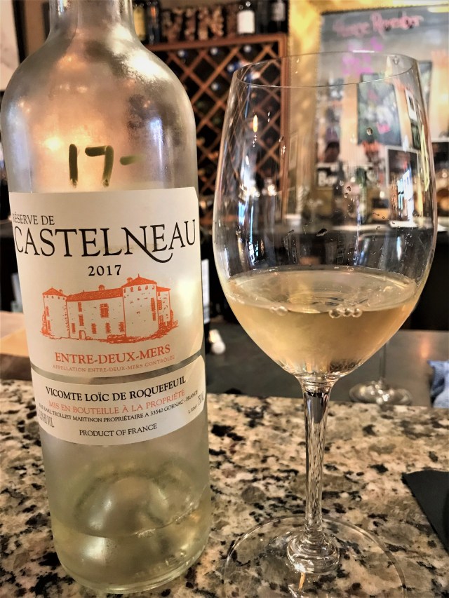 I actually learned of Wines on Main from the resident sommelier that I met at another wine bar that is now gone, and the great thing is, this sommelier is actually a retired pharmacist. Alas, he only works a couple of days a week and the weekends were not on his schedule. He does aid in the buying and the write-ups of the wines that are featured each week for the tastings. We ended up doing seven tastings that afternoon and I will discuss the first two wines that we had. The first wine that we tried was Reserve de Castelnau Entre-deux-Mers 2017 from Chateau de Castelnau. Entre-deux-Mers translates to “between the two seas,” but here the two water ways are the Garonne and Dordogne Rivers of the Bordeaux region, and the area is one of the hardest to keep track of, because is has several small appellations, and the region grows red and wine, dry and sweet, and then some of the wines go under the generic listing of either Bordeaux or Bordeaux Superiore. The appellation for Entre-deux-Mers is actually for white wines made from Sauvignon Blanc, Semillon, Muscadelle and Ugni Blanc. This particular wine was sixty percent Semillon, thirty percent Sauvignon Blanc and ten percent Muscadelle. It was delicious and I could already see the wheels spinning in my Bride’s mind as to how many bottles did, she want to get. The second wine that we tasted was a more familiar one to us; Gary Farrell Russian River Selection Chardonnay 2016. Gary Farrell was one of the original winemakers of the Russian River Valley, way before there was an appellation and he is striving to produce Grand Cru quality Pinot Noir and Chardonnay wines for over three decades. The Russian River Selection is a blending of different vineyards and blocks of land that are combined to just give a great balanced wine with enough buttery finish and acidity to be totally enjoyable. I was already happy with the first two wines.