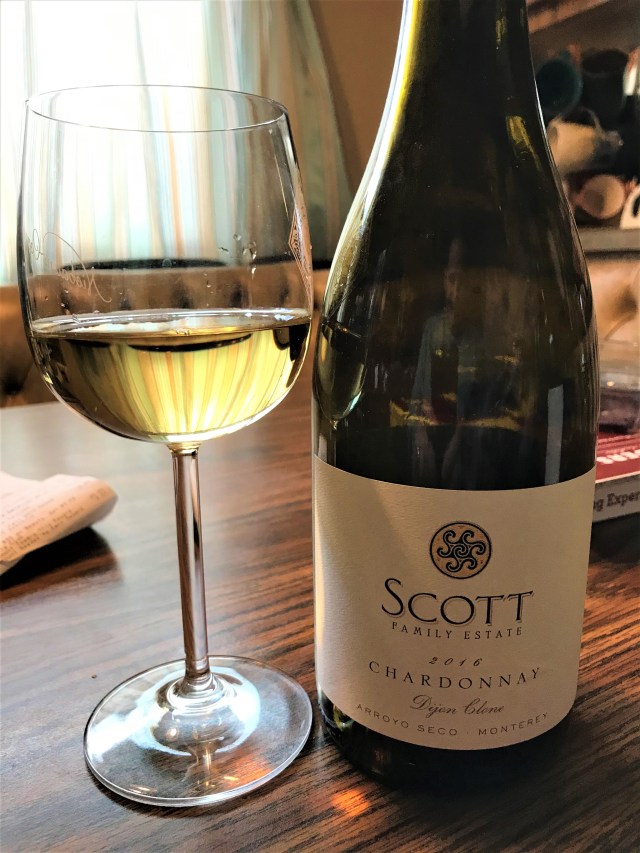 Well with all that food we had to have some beverages to wash it down, and both of the ladies enjoy white wines, see what I learn over the years? We started off with a killer bottle of wine Young Inglewood Michael Mara Vineyard Chardonnay, Sonoma Coast 2014. This is the one wine that is not estate grown from Young Inglewood which is in Napa Valley, and in fact if you noticed, it is not even from Napa Valley, but from the Sonoma Coast. Steve Mathieson of Michael Mara Vineyards is the wine mentor for Young Inglewood and he has a dedicated area that his fruit is harvested from each year, because of the friendship. The hand-harvested clusters were gently pressed whole overnight and two-thirds of the juice was aged in French Oak, and one-third in Stainless Steel. The juice was aged Sur Lie for sixteen months without racking, fining or filtering. Only twenty-five cases of this wine were produced. This wine had a great nose, too bad that every Chardonnay wine does not, a beautiful light gold color, decent legs and a long finish. After that wine we had another Chardonnay, Scott Family Estates Arroyo Seco Chardonnay 2016 and another excellent bottle of wine. Scott Family Estates are actually located in St. Helena in Napa Valley and are under the larger umbrella of Rutherford Wine Company. Arroyo Seco, which means Dry Creek is in the middle of the Salinas Valley which is located in Monterey County. Arroyo Seco is known for having heavy fog cover which means that the vines are slow to ripen under the cooler temperatures and harvests have been known to take place in November. While Arroyo Seco is well regarded and received its AVA in 1983, it is not seen that often, and the largest crop there is Chardonnay. This particular wine is made entirely from Dijon Clones and was aged Sur Lies in a combination of Stainless Steel and French Oak. There were seven-hundred-sixty cases produced and the aging potential for this wine is for five to six years, though truthfully most Chardonnay wines in this house do not last that long. You know that I am not one for descriptors, but this wine delivered great citrus flavors and a nice long finish with just enough buttery oak to make everyone happy. There will be more adventures and more wine to come.