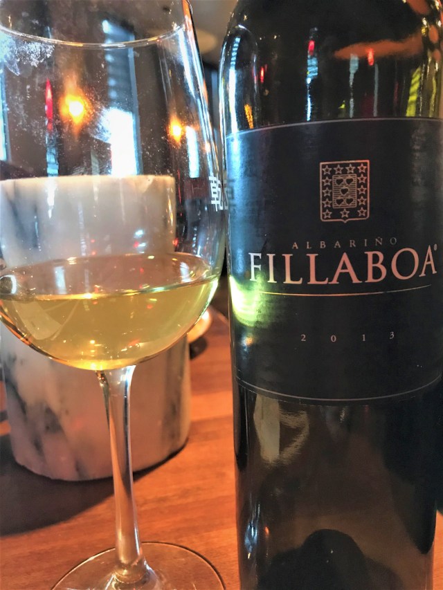 I can assure you, that we also had a bottle of wine to quench our thirsts, and we knew that there really was an unlimited supply at home afterwards, in case anyone was still thirsty. The P.F. part of the association assured that there would be some interesting popular priced wines. We started with Bodegas Fillaboa Albarino 2013 from Rias Baixas DO in the Galicia region of Spain. Rias Baixas is a relatively new DO in Spain as it was granted in 1988 and it focuses on Albarino. Bodegas Fillaboa is one of the oldest estates in Galicia and they have seventy-four hectares devoted to Albarino in twelve separate plots. Bodegas Fillaboa also produces liquors based on their Albarino that has been converted and distilled into three different brandies. The wine had a pretty golden color with a good nose and complimented the assorted foods on the table. It is always fun to go out, and I am trying to expand what I eat, the exploring new wines is the easy part.