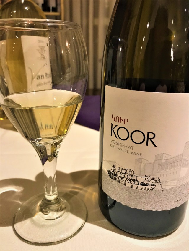 Koor by Highland Cellars was formed in 2014 when a group of Armenian friends, that returned to the homeland from other lands met and climbed Mount Ararat. From this endeavor they decided to stay and join the reviving wine making industry in Armenia and to only use indigenous grapes. The name Koor is an homage to the ancient Armenian riverboats that aided in the commerce of merchants from Armenia to Babylon down the Euphrates River. Koor Wines at the moment offers two red wines, a regular and a reserve and one white wine, and it was the white wine that I tasted. I can only speak for the Highland Cellars “Koor” Vosketehat Vayots Dzor 2017. The grape varietal Vosketehat translates from Classic Armenian as “the golden seed” and has been in the area since history began. The grape is floral with a natural acidity that makes it work well with foods, more savory than sweet. There are four major regions for Armenian wines and Vayots Dzor is one of them. The wine was very interesting with a subtle floral nose and delivered very soft traces of stone fruit, but the terroir of volcanic soil and limestone had the most pronounced impact on the finish. I was listening to several people that thought it was a terrible Chardonnay, but I did try to explain to some that it was not a Chardonnay at all, but so many people see a white wine and think of that grape. I would have it again, at the beginning of a meal, especially with cheese and charcuterie and even Armenian Toorshee, which is usually a mixture of pickles, cabbage, peppers and carrots, as I think the spiciness of the different pickled entities would be a great compliment.