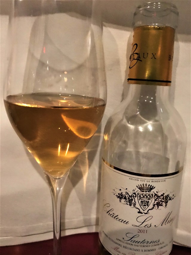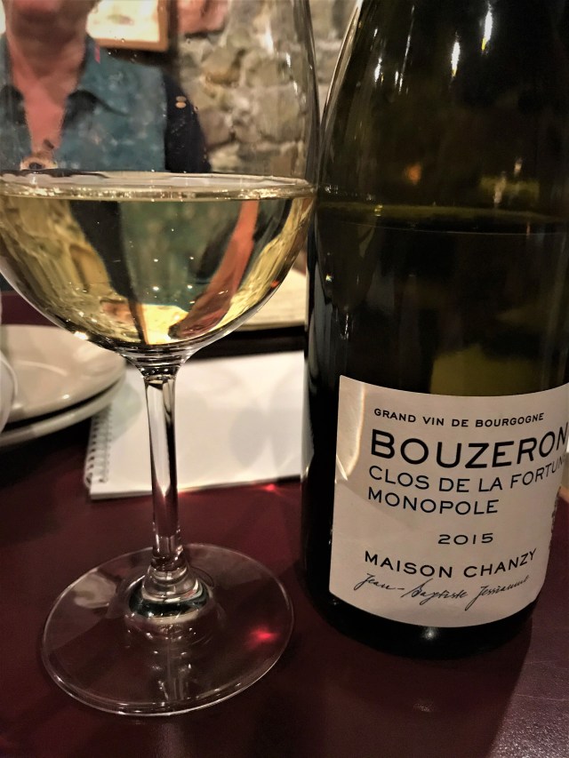 With such a great wine list, I needed some extra time to make the initial selection, as I always feel that all eyes are on me, including my own Chancellor of the Exchequer, to find a wine that is interesting, delicious and affordable, and it is the last requirement that sometimes gets me into trouble. Please do not ask me how, but there I was looking at a long list of French White Wines and my eye was attracted to a wine that I had not heard of, but that I had seen it mentioned by two other Wine Bloggers, so I thought that was the wine to start with. I ordered a bottle of Maison Chanzy Bouzeron Clos de la Fortune Monopole 2015, and the Sommelier arrived with the bottle, because she was very curious to see who had ordered this wine, and I have to admit that I had to look up Bouzeron after the second time that I saw it, in retrospect, I should have looked it up immediately, but sometimes I am lazy, even if it is about wine. Maison Chanzy used to be known as Domaine Chanzy and they own eight hectares spread across three Burgundy Cotes, with the majority of the plantings in the Cote Chalonnaise and with an historical presence in Bouzeron, and it is Bouzeron that they are most proud of, and willing to tell the world about it. Bouzeron is a small village that now has its own appellation since 1998, but only for white wines made from the Aligoté grape, and for years it was listed under a sub-division title of Bourgogne-Aligoté. Bouzeron is in the northern Saone-et-Loire region of the Cote Chalonnaise, in the valley and the Dheune River separates it from Santenay and it is very close to Rully and Chassagne-Montrachet. Eighty percent of the juice is done on the lees in Stainless Steel and the balance in oak and it is bottled in the summer, to maintain the fruit and youthfulness of the Aligoté grape. As you may have noticed Maison Chanzy owns the entire Clos de la Fortune and they are very proud of it, as part of their domain. The wine offered nice herbal notes, and some great terroir (flinty from all of the limestone soil of the area) with a nice refreshing finish. I was going to order a titled Chablis for our second bottle of wine for the dinner, but I was roundly outvoted, as everyone was more than pleased with this wine. After dinner, we did enjoy something that to me was more interesting and fulfilling than a dessert, as we shared a split of Chateau Les Mingets Sauternes 2011. It is part of Vignobles LVDH and provides quality wines in the United States and Europe, since 1997. The wine is pure Semillon and was aged in oak for eighteen months and like every Sauternes I have had, it is drinkable from day one, but really enjoys aging when it gets a chance. It offered classic notes of honey and melon with some terroir thrown in for good measure. Hopefully, now that three of the four of us are retired, we can make arrangements for dinners more often.