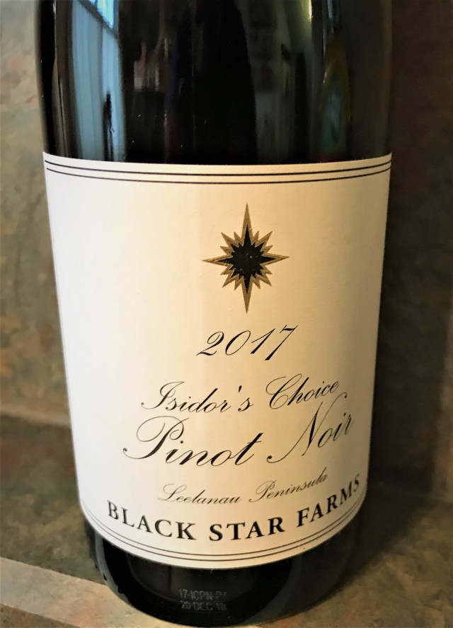 We received a shipment of four wines, two of each; Black Star Farms Isidor’s Choice Chardonnay Leelanau Peninsula 2017 and Black Star Farms Isidor’s Choice Pinot Noir Leelanau Peninsula 2017. Isidor’s Choice wines are from fruit harvested from a grower-partner on a higher plateau of land. There was a prior time that they marketed an Isidor’s Pinot Noir as well as a Red Blend and they have brought it back, initially only for the club members, or at least they get first dibs. The winery is attempting to create two wines that are more Burgundian in style. There is no mention of aging time or the quantity produced. The Chardonnay is listed as having extended aging in French Oak, in a combination of new and second use barrels. The wine is described as having apple and pear aromas, with hints of vanilla, spices and a smooth oak finish. The Pinot Noir has been aged in French Oak, with half of the barrels being new. The notes say “if you are looking to try a Michigan version of what the French call Burgundy, this is your wine!”