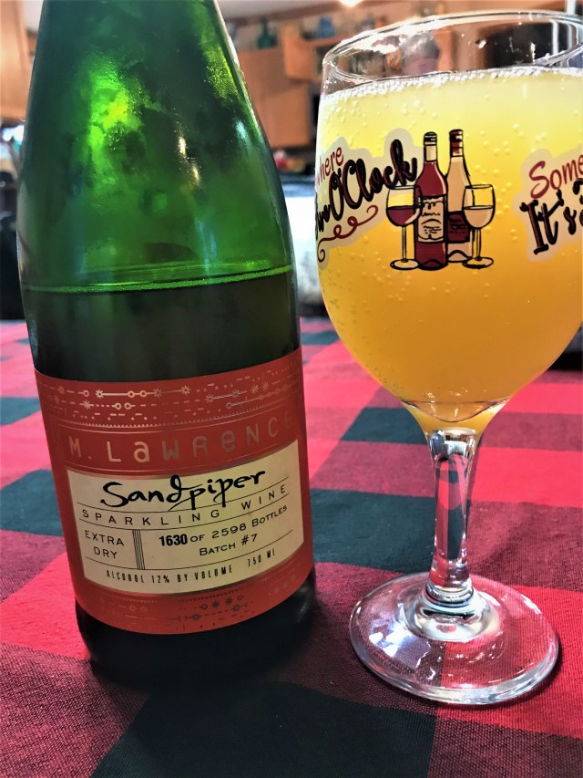 Christmas is a wonderful day to set aside for family, if one has the luxury to do. Tradition for my Bride and her sisters is to have breakfast with her Mother and that certainly precedes me in the timeline. The sisters and as many of their children and grandchildren all show up to greet the day. There are pastries everywhere to pair with the coffee. Christmas breakfast is scrambled eggs, bacon and Fresh Kielbasa. It is a bit of an acquired taste, but after all of these years, it has grown on me, though I admit that I am still more partial to Smoked Kielbasa. We also enjoyed Mimosas, which we brought to the festivities and I know that you are all surprised. I mean in the civilized world what else does one enjoy during breakfast or brunch? One of my brothers-in-law would prefer a Bloody Caesar, those Canadians are a breed apart. In case you have never heard of a Bloody Caesar, it is Clamato Juice and Vodka. We used a Michigan sparkling wine for the day. We had M. Lawrence Sandpiper Batch #7 Extra Dry NV by Lawrence Mawby. Sandpiper, which we have had before, is only available at the winery, it is aged in Stainless Steel and undergoes two fermentations and it a blend of Chardonnay, Vignoles, Cayuga, Riesling, Pinot Noir, Pinot Gris and Traminette. It may have been overkill and definitely too nice of bubbly for a Mimosa, but it sure tasted great.