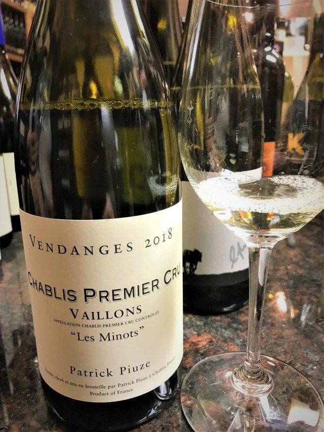 Then we had a chance to follow that classical California Chardonnay with an excellent version of a French Chardonnay. We had the Domaine Patrick Piuze Chablis Premier Cru Vaillons “Les Minots” 2018. Domaine Patrick Piuze is a recently founded négociant in Chablis, specializing in the Chardonnay grape. Patrick Piuze was born in Quebec, Canada and from the age of eighteen began a series of occupations and business in the wine trade culminating with his own winery in 2008. He owns no vineyards, but has contracts with an assortment of growers who are known for their older vines and they act as consultants on the production of the wines from their properties. All the fruit is hand harvested and he employs a vertical press rather than a pneumatic press to get the juice. He has several “Village-level” Chablis wines from assorted sites, as well as eleven Premier Cru and six Grand Crus. The opening range of wines are done in Stainless Steel and the others are done in neutral oak barrels. He produces on average one-hundred-ten-thousand bottles a year. Vaillons is one of the largest Premier Cru vineyards in Chablis and is located in a valley just southwest of the town. It has the same terroir that is found in the Grand Cru districts and some of the sub-climats use their name and designations and others do not and both are legal in the French wine laws of Burgundy, much beyond my understanding. This wine was refreshing and what I look for especially in Chablis, the terroir really shines and my notes read “green and flinty” which is my short-hand for a crisp Old-World Chardonnay. A couple of perfect white wines while we were waiting in the shop.