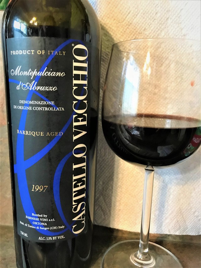 While it was simmering, I went down to the cellar and was rummaging around looking for something interesting or something I may have forgotten about, you know that happens. I found a bottle of Farnese Vini Castello Vecchio Montepulciano d’Abruzzo 1997. Farnese Vini is an Italian wine group and one of the leading export companies in Southern Italy and today produces about thirteen-billion bottles of wine a year. They have seven wineries in Puglia, Campania, Basilicata, Abruzzo and Sicily. In Abruzzo, Farnese Vini owns two wineries one is Caldora and the other is Fantini Farnese. Fantini Farnese has a wide range of red and white wines under multiple labels and designations. Castello Vecchio is no longer a viable label that I can find, but it was barrel aged and of course made from the Montepulciano grape. This wine was a bit troublesome to open, as the cork was giving me some difficulty, but with aid of one of my “Ah-So” metal prong openers, I got the cork out intact. The wine still had a deep color, with just perhaps a tinge of brown at the rim, and the nose was very light. The wine was drinking very easy with almost no tannins or fruit showing, but a very layered soft wine that really was subtle with the Sauce Bolognese. Even a couple of days later, when we had some leftovers of the pasta and I reopened the bottle it was still totally enjoyable. I am sure that this wine would have been quite robust young, but it was very interesting to see how it had become a mellow twenty-three-year-old. The good news is that we are still eating and drinking through the mandated quarantine.