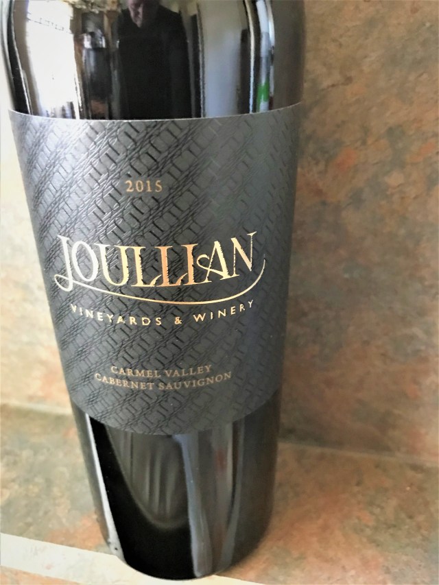 The Joullian Vineyard Cabernet Sauvignon Carmel Valley 2015 was the earliest ripening in two decades, brought on by a three-year drought. The heat was so intense that they actually hand harvested the fruit twice with a ten-day interval to pick the sunny and shaded fruit and they claim the extra labor was required and appreciated. The wine is a blend of eighty-four percent Cabernet Sauvignon, thirteen percent Merlot and three percent Cabernet Franc. The wine was aged for nineteen months in French Oak, of which fifteen percent was new. They made a little over thirteen-hundred cases with an additional seventeen cases of magnums and they claim that there is an aging potential of eight to ten years. The tasting notes supplied promises an inky, dark garnet wine with a nose of blackberry, cassis, anise and cedar. The taste follows those descriptors and has a nice finish of tannins, truffles, terroir and cedar. The Wine Enthusiast awarded this wine with 89 points. I think that this wine will do well with some additional cellaring.