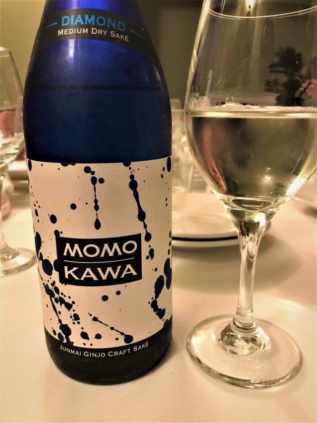 My Bride and I were the only wine drinkers, so it was rather easy to select a wine for us and we had the Kunde Family Winery Chardonnay Sonoma County 2018.  The Kunde Family began farming in the Sonoma Valley in 1904 when Louis Kunde emigrated from Germany and acquired the Wildwood Vineyards Ranch.  The Wildwood Vineyard had been planted in 1879 using imported cuttings from Chateaus Margaux and Lafite-Rothschild.   They survived Prohibition, only to close during the Second World War, because the sons were drafted.  After the war, the sons expanded on the property and bought the Kinneybrook Ranch and that is where the winery is today, and the family is now into the fourth and fifth generations of family as stewards of the property.  The Sonoma Valley with its red volcanic soils and ideal climate is perfect for Chardonnay.  Seventy percent of the wine was aged for nine months in French Oak, of which twenty percent was new, and thirty percent of the wine was aged in Stainless Steel.  After blending the wines, the wine delivered a nice crisp wine, with good acidity and a subtle oak finish.  It worked extremely well with both the Sea Bass and with the Scallops.  While everyone else was ordering desserts, I thought that I would treat myself and try a glass of Sake, and I had no idea what to order, so I allowed the waitress to make the selection for me.  She brought me a glass of Sakeone Corporation Momokawa Diamond Junmai Ginjo Craft Sake NV and it turns out it was from Oregon.  Sakeone Corporation is Momokawa’s American offshoot.  Established in 1992 as a premium Japanese sake importer and in 1997 went to the Willamette Valley and the rice grown in Sacramento Valley and began brewing Sake in Forest Grove, Oregon.  They are now the most successful Sake producer in America. The Sake is made with polished rice and no distilled alcohol added, pasteurized twice it was rather crisp and is served chilled.  My Bride was already discussing the possibility of return visits to Shiro.