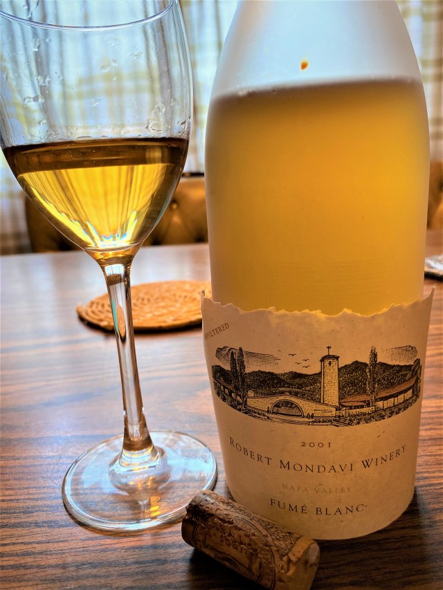I have going through the cellar and bringing up the white wines to put into the wine vault in the family room and then I will rearrange all the red wines that that are allover the basement and the stair case going to the basement. As a precaution, I have been putting two white wines in the refrigerator at the same time, more as an insurance policy, just in case, and so far, we have only encountered one over-the-hill wine, out of perhaps 1500 bottles, so far, the odds have been good. I also have to say that I am really appreciative that my Bride got me The Durand wine opener, as it has been a blessing for opening up all of these twenty-year-old wines. I opened up a bottle of Robert Mondavi Winery Fume Blanc Napa Valley 2001, and the label actually fell off of the bottle in the refrigerator. Some people will probably scratch their head and say that they have never heard of a grape varietal named Fume Blanc, this is all fine and good, now onto this mystery varietal Fume Blanc, that I had opened. Fume Blanc is a marketing name coined by Robert Mondavi for Sauvignon Blanc, which at the time was suffering an image problem, as most people were associating this varietal for a sweet white wine, which it can be when it is in the production of French Sauterne. It can also be a dryer white wine, when it is from Graves in Bordeaux or from the Loire Valley of France. It is from the Loire Valley that Robert Mondavi created this wine term of Fume Blanc playing on the reputation of Pouilly-Fume. The most remarkable thing is that several other wineries including Ferrari-Carano have jumped on the band-wagon and call their dry Sauvignon Blanc Fume Blanc. They also tend to make the wine more in the tradition of the Loire Valley by using both Stainless Steel and used French Oak barrels for the production of the wine, and I also have to say that Fume Blanc is not a trademark name, just one that has been used and accepted; and there are no actually regulations or requirements for this “proprietary” name. I guess the name change has worked over the years, and because this wine is actually a Sauvignon Blanc it should be a pale straw wine that normally is described as green and flinty. This was the second wine that had to be unceremoniously poured down the sink, as it was amber in color and had a foul nose and taste. I cannot blame it on the wine, it was just in the cellar longer then it should have been.