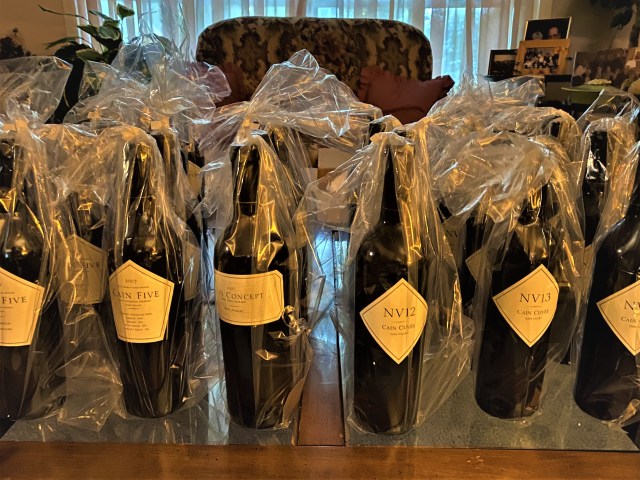 Getting two cases Cain Vineyard & Winery wine, certainly put this house on high alert, and we were almost giddy waiting for the actual moment of delivery. From the first time that I had the wine, and then later when my Bride and I shared our first bottle, it has been on a hallowed mantel in our thoughts and cellar. We have had other wines that are lauded by the press and other bloggers, but we keep going back to Cain, when we can find it, which is not often around here. Maybe it doesn’t have the cachet, and to be truthful, that is fine with me, as it prevents the wine from becoming even dearer than it already is. There was a pounding on the front door, and I left my spot in my office on the computer to run down to answer the door, I even went so far as to put on a mask, when I opened the door one case was already on the front porch and the driver was already bringing the second case to the porch. I guess with everything going on, the protocol for signing for the wine has been on hold, maybe because when the driver looked at me, he was pretty sure that I was past the Age of Majority and was probably thinking that the wine was shipped overnight, because who knows how long I would be on this earth to enjoy drinking wine. Any ways, I did not have to sign and by this time, my Bride had left her work station to open the screen door for me, as I carried the cases into the living room.