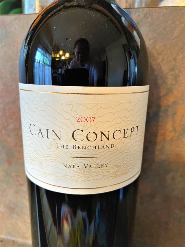 The Cain Vineyard is located at the crest of Mayacamas Range that overlooks the Napa Valley and Saint Helena. The four bottles of Cain Concept “The Benchland” 2007, from their library collection, is from vineyards lower down the mountain side going from Yountville to Oakville to Rutherford to St. Helena and all very special real estate of its own. This wine is a blend of fifty-seven percent Cabernet Sauvignon, eighteen percent Merlot, thirteen percent Cabernet Franc and twelve percent Petit Verdot. Cain Concept is handled by the winery the same way as they produce Cain Five (which is the mountain vineyard) and it takes a total of just over three years of production. There are no notes, but I do know the wine is barreled as I have seen them stacked. Now, I can look forward to having some of the Cain Concept 1996 as I am sure it is ready to be tried and there is three left of that wine.