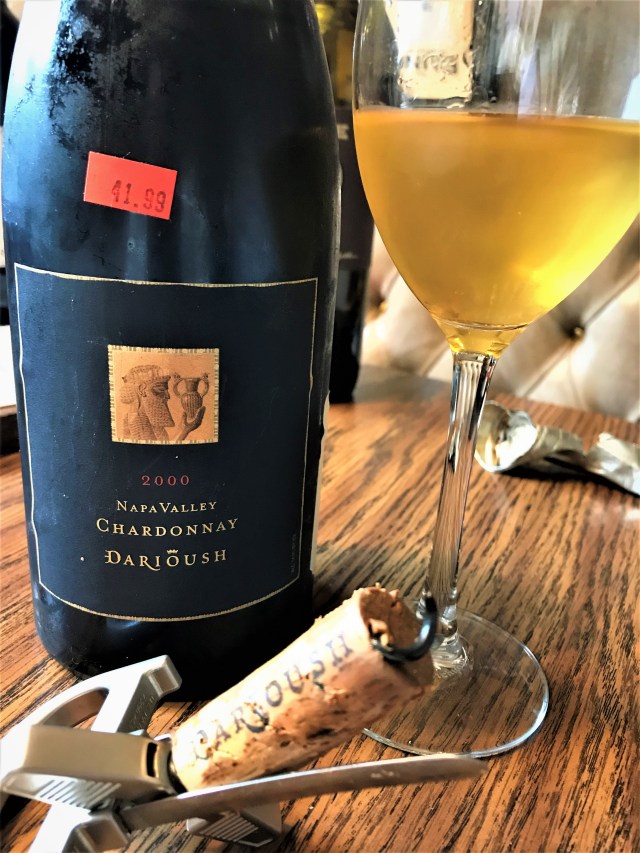 The second and back-up wine that I had chilled was a Darioush Chardonnay Napa Valley 2000, and I was praying that this wine would be fine, as just a few weeks earlier, we opened up a bottle of Darioush Viognier Napa Valley 2001 and it was a delight. History repeated itself and shows the dedication that this winery has, for a relatively newcomer to the wine scene. This wine was pure Chardonnay that had a late harvest, and underwent whole cluster pressing to small barrels for primary fermentation and then inoculated for malolactic fermentation. The juice was then aged Sur-Lies for eleven months in French Oak barrels from the Burgundy region of France, and then the wine was bottled without fining or filtration. A beautiful bottle of wine was enjoyed by my Bride and I with a dish of Chicken breasts with Capers and Artichoke Hearts. The wine was totally mellow and reminded me of some excellent aged white Grand Crus I had a chance to try as a kid back in the early Seventies. So wine, like life is a bit of a “crap-shoot” and I am going to the give the benefit of the doubt to each and every bottle that has been resting, and for those that don’t make it, there are always the memories.