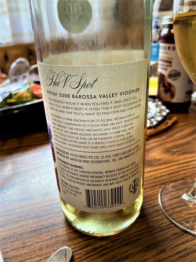 Which leads me to the wine that I discovered in my collection Fetish Wines “The V Spot” Viognier Barossa Valley 2008. I have to say, that even the back label was rather intriguing in its write-up and ballyhoo. “You definitely know it when you find it, and, once you find it you will never forget it. Fetish “The V Spot” Viognier is the sort of wine that you’ll want to find over and over again.” I had good fortune with another older Viognier, but I did have my concerns as this wine had a screw cap, but then so do some of the Chateau d’Yquem wines. The wine still had a floral nose, though not as pronounced as a fresh Viognier, and neither of us could put into words what the wine was, but it was delicious, smooth and rather mysterious, perhaps we had found the V Spot, and alas never to find it again. Another happy ending for a twelve-year-old white wine, that has no provenance per se, but it surpassed all expectations, so a good lesson and a fun moment, and in these times, we do need fun and good news.