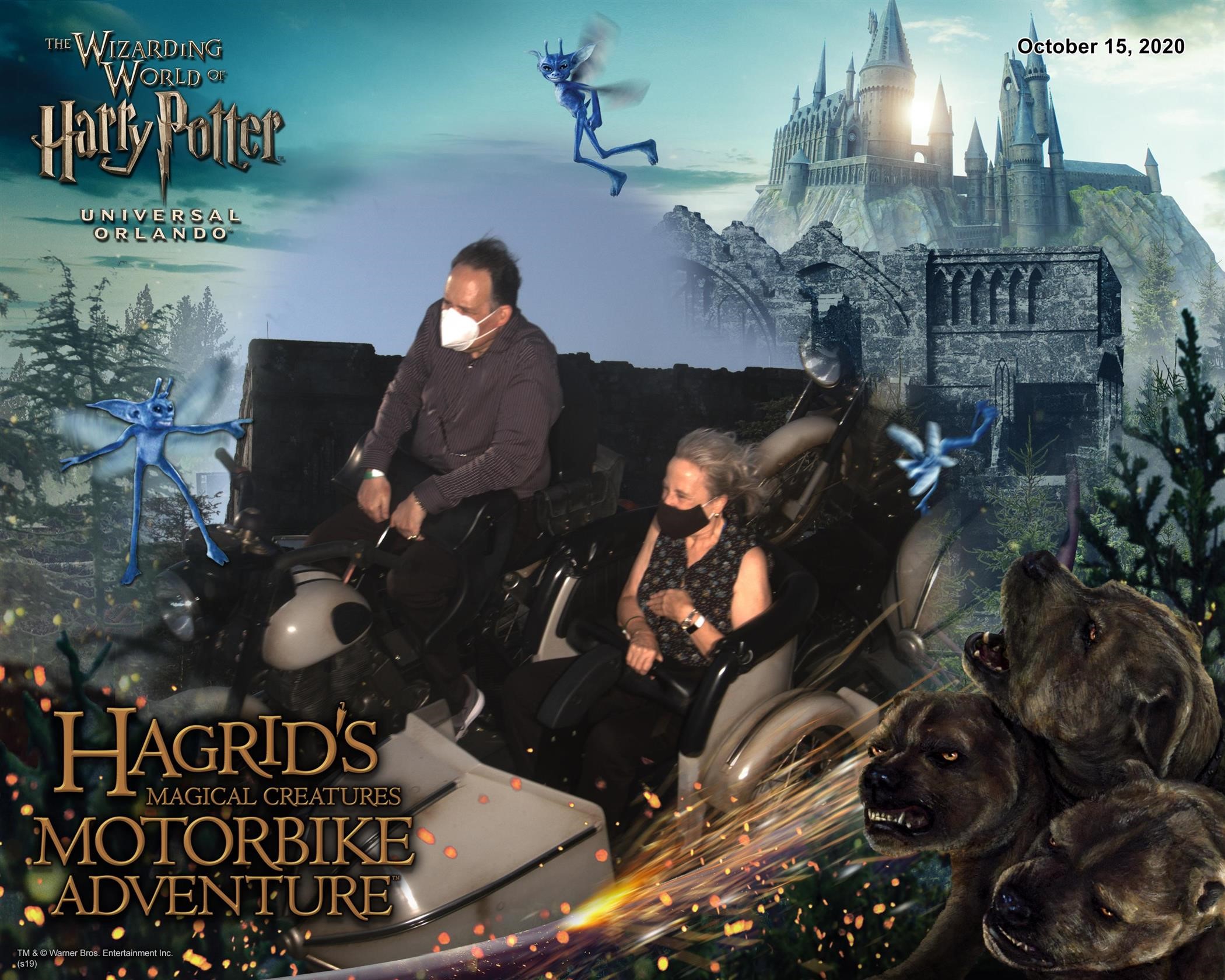 We basically lost a day at Universal Orlando, because back in January when we bought our holiday package for October when we redeemed our purchase, the airline had eliminated our return flight and moved us to an earlier flight, basically eliminating our last day. My Bride was undaunted by bureaucracies, unconcerned help desks and the likes, after our last night dinner, which I will discuss shortly, we took the water taxi to our hotel and packed so that we could leave our luggage with the Bell Captain, until our airport shuttle arrived to start our return trip. We packed early, because we were going to be the first in line to get into the park to ride on “Hagrid’s Magical Creatures Motorbike Adventure” as that every time we had attempted to go there, I think the line was almost to Detroit. We got down to the water taxi port and they were not open, so we walk from the hotel to the City Walk and all I could think of, was, what if there were alligators lurking in the waterway on the grounds, because we were the only people out that early in the morning, and I was also a rebel and walked in the fresh air without a mask and it was refreshing. My thoughts were that we could get a fast breakfast before the park opened, surprise, the park was locked up at a gate outside of the CityWalk. Eventually the gates were unlocked, we walked through some metal detectors and then we walked to the entrance of the park, and we were the first in line at one turnstile, but I think we had a rookie, as she couldn’t get the thumbprint reader to work, also my Bride’s catch-all purse exploded from all of the stuff, that she could never find in it, and I was instructed to go straight to the admission gate for the ride, as I was passed by runners and joggers, it seemed that everyone at that early hour, only had plans to go to the ride. I finally got to the line, yes, there was already a line, and I had to step aside and wait until my Bride showed up, and she had bought a “fanny-pack” contraption, but got everything to squeeze into it. Somehow, we still ended up getting into the first wave of riders as we followed the maze that was set up. I am glad that I did not wear my hat that morning, as it was the G-forces of the ride blew the head band right off of my Bride somewhere on the grounds of the ride. The ride was awesome, exciting and my Blood Pressure and adrenaline survived the test and we were both alive at the end, even though there were some pretty scary moments, especially with me strapped into a motorcycle, and my Bride had more security in the sidecar. Everyone said that it was the ride to do, we did it, and I must agree, and we will probably not go on another rollercoaster ride, unless it is with potential great-grandchildren in a kiddie park. We had time left to go and have a mediocre breakfast at the hotel, and I found a secluded sofa near a closed bar in one of the lobbies of the hotel and took a short nap, I am such a great world traveler. The next thing I knew, we were home, and that is when I began writing about the trip, as I have never understood the compulsion the tell the world on Social Media that my house will be empty, because we are on holidays.