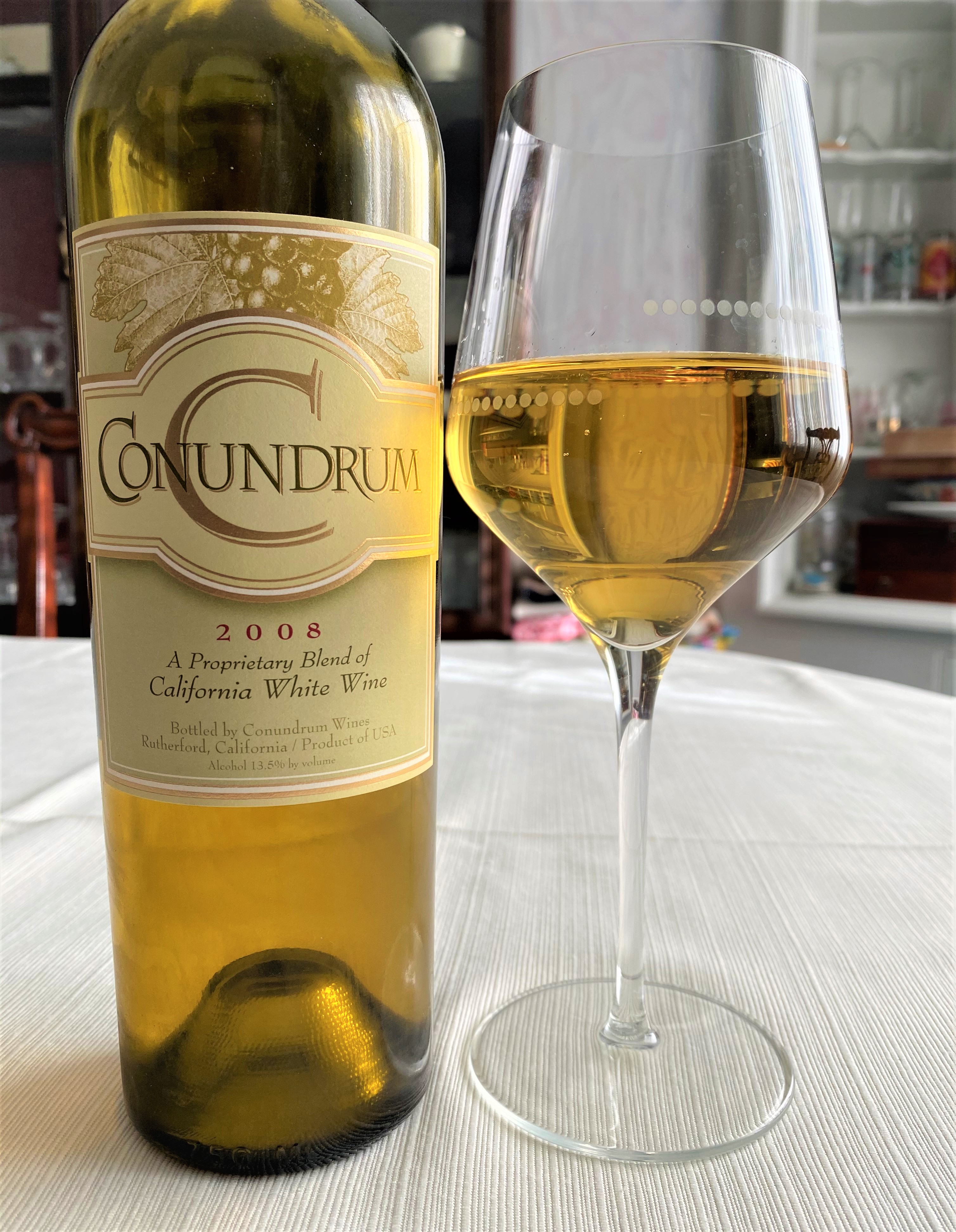 They arrived and were immediately pressed into service. The first dinner with the new glasses was Panko encrusted Salmon with sides of fresh asparagus and diced and roasted sweet potatoes, followed by Chocolate Pudding. For the wine we have been still experimenting and chilling some of the older white wines that have been forgotten about, or relegated to second place, because some other wine may have been the hot wine at the moment for us, and that is normal for almost any category of items, it is just human nature. I found several bottles of Conundrum California White Wine 2008 by Caymus which is their “Proprietary Blend.” The wine is bottled at the Caymus facility in Rutherford, but the wine is a California AVA, because the fruit is harvested from Napa, Monterey, Santa Barbara and Tulare Counties. The wine is a blend of Chardonnay, Sauvignon Blanc, Semillon, Muscat Canelli and Viognier, but the percentages and production are a secret. The color of this twelve-year-old was quite a deep gold, but it was delicious and in fact we almost finished the bottle during a Zoom session, it was that flavorful. My Bride has had very good success with the program and a completely new wardrobe as well; too bad that I have not, through osmosis, actually I have, but not to her extent.