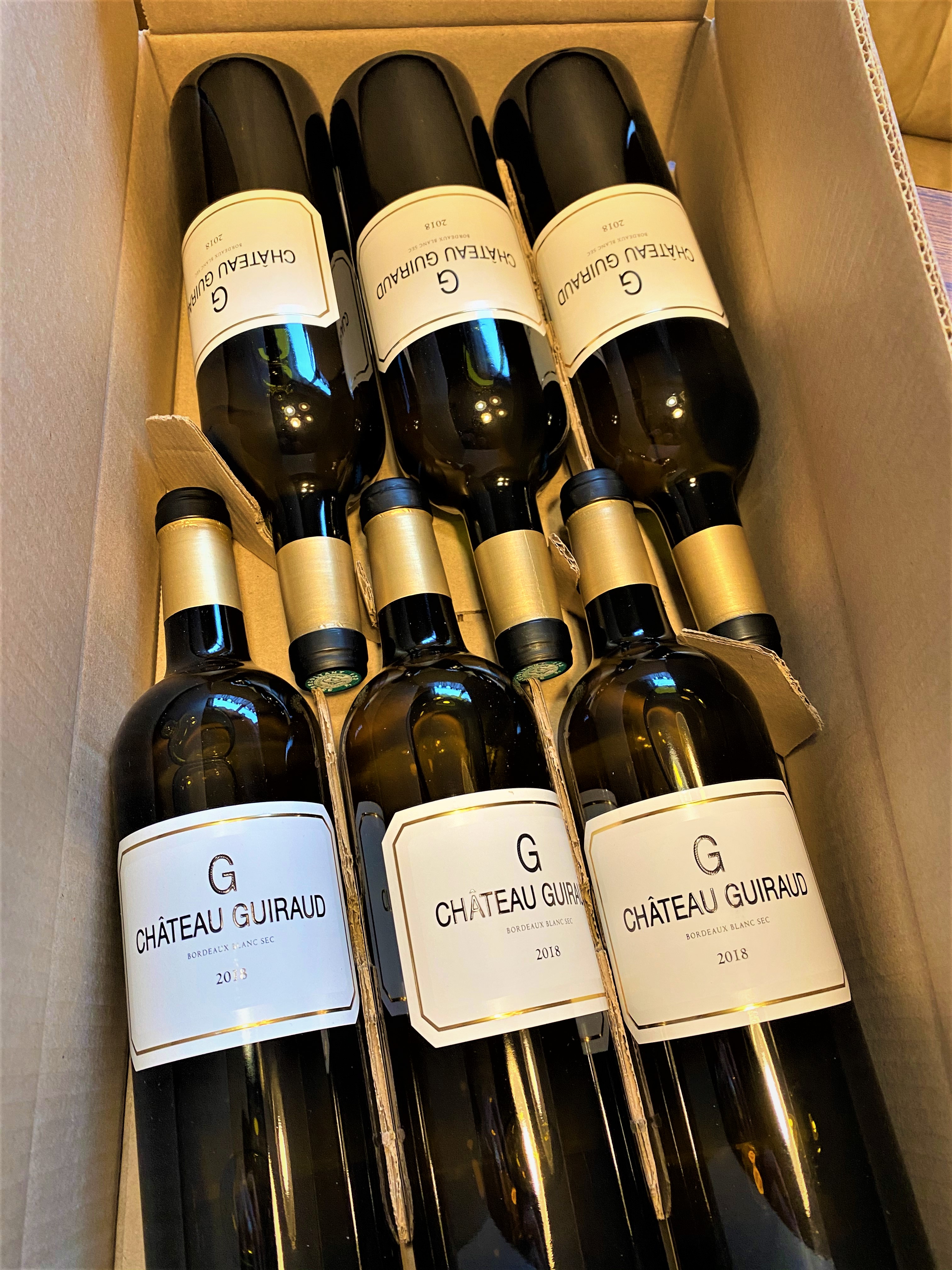 While most Bordeaux Blanc Sec wines are predominately Sauvignon Blanc, Le G de Chateau Guiraud is fifty/fifty. The fruit is manually harvested using small baskets and fermentation is for about three weeks. Eighty percent of the wine is aged in the barrels from the last vintage of Chateau Guiraud and twenty percent is done in Stainless Steel. The average aging in the barrels is seven months with regular stirring of the lees. This is a very lush and full-bodied white wine with a delicate gold tinge, a very refreshing wine that leaves one chewing the wine to appreciate the suppleness of the fruit and the terroir that lingers and beckons for another taste. It most assuredly passed the Bride’s test for desirability and it comes in a handy easy to carry six pack.