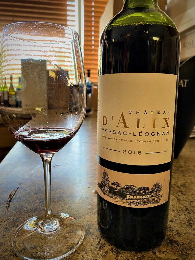 Chateau d’Alix Pessac-Leognan Rouge 2016 and Pessac-Leognan is an appellation for red wines of Bordeaux that was carved out of the Graves district in 1987, including some of the chateaus there were listed in the Graves Classification of 1959. Chateau d’Alix is a joint venture of Muriel Belloc, a third generation wine-grower and her husband Jean Noel who is also a wine grower. In 2008, they began with a clean slate of sixty hectares, of which twenty-one hectares were planted in the AOC delineation. In 2012 they had their first vintage in a brand-new cellar. The average age of the vines are five years, so it is a young tasting and fresh wine and an equal blend of Cabernet Sauvignon and Merlot. The fruit is harvested both mechanically and manually. Fermentation and maceration are done in Stainless Steel for about a month and then the juice is aged in oak for twelve months. The wine offers red fruits in both the nose and the taste with some nice gravelly terroir in a medium finish. I think the winery will definitely show promise for the future, if this young wine is an indication.