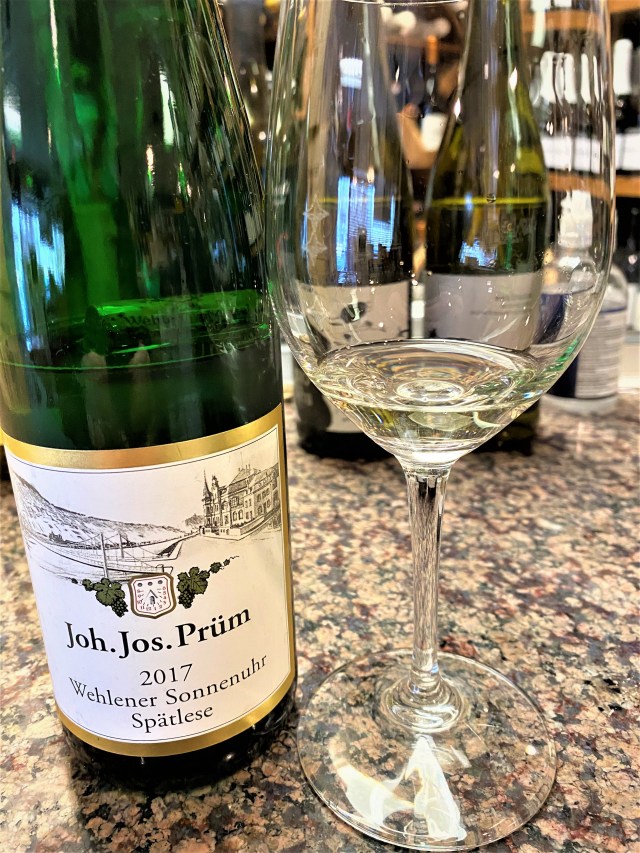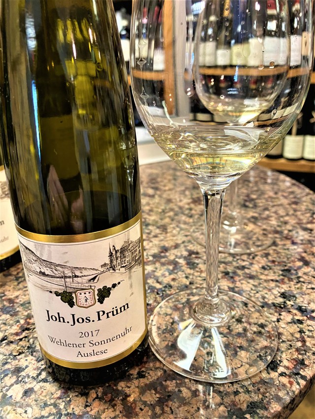 I had the chance to taste two different wines from the same winery, same vineyard, same vintage, but two different levels of ripeness while I was at The Fine Wine Source in Livonia, Michigan. I guess as a “Street Somm” I have some knowledge, but I am still in awe of how little I know after fifty years of enjoying wines. Over the years I have tried to have wines from many different regions and at many different price points and tasting wines is a lot of fun. The Prum family have had a presence in the winemaking in Wehlen for over four-hundred years, and the estate as is now known was established in 1911 by Johann Josef Prum and it was under the guidance of his son Sebastian and later his sons and onto the fourth generation that have maintained the quality level that is respected world-wide. They have fourteen hectares of holdings in five Grosse Lages or First Growth Vineyards and they only grow and produce Riesling wines. Directly across from their base of operations is the legendary Sonnenuhr (Sundial) Vineyard in Wehlen, which is a very long and steep vineyard that runs along the Mosel River and the soil is noted for its blue shale and there are about twenty wineries that have vines in Sonnenuhr, but the Joh. Jos. Prum winery is the largest and most known.