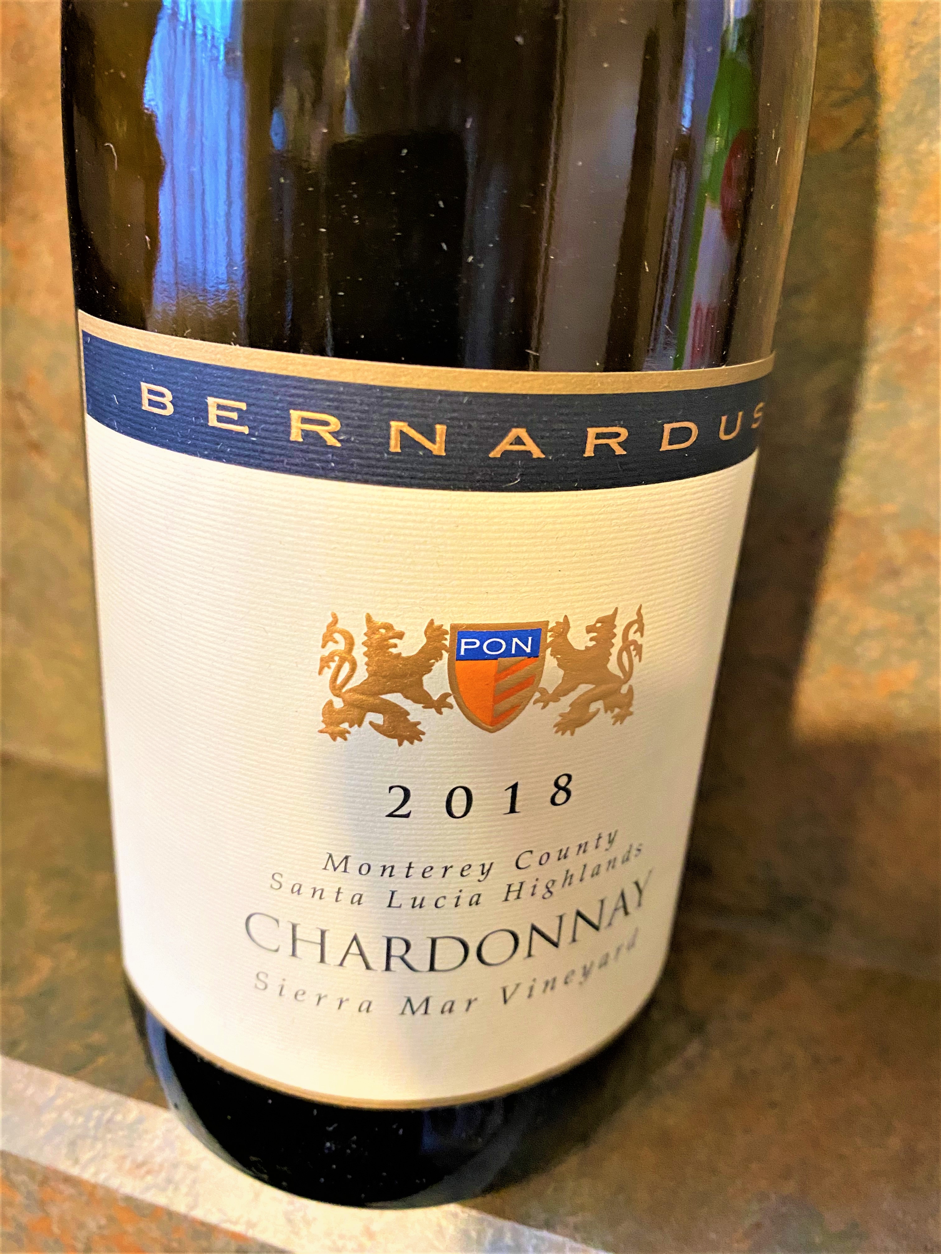 Bernardus Winery Sierra Mar Vineyard Chardonnay Santa Lucia Highlands 2018 is one of the single vineyard designated wines that Mr. Pon envisaged and his version of a white wine to compete with Burgundy.  Sierra Mar Vineyard was planted by Gary Franscioni on a hilltop at the southern end of the Santa Lucia Highlands.  Bernardus Winery has the good fortune to be able to get both Chardonnay and Pinot Noir fruit that has been harvested from this respected vineyard. There are several clones that have been planted there like the Wente clone and the Dijon clone 96, and all the fruit is hand harvested and hand sorted.  This Chardonnay wine emulates the best of the white Burgundy wines, in that it has gentle whole-cluster pressing and special selected yeast for the fermentation and a complete malolactic fermentation.  Each barrel is hand stirred every two weeks until just before the final blending and bottling.  The wine is aged in French Oak, of which forty percent is new for about eleven months.  The tasting notes suggest a nose of ripe peach and apricot along with caramel and honey suckle.  The taste offers candied white fruits, spice and toasted oak, with rich tones, crisp acidity and a very long finish, and an aging potential of six to eight years.  There is nothing shabby about this wine and I am sure one can understand my excitement about this wine.