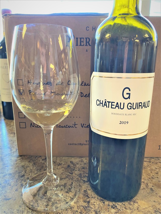 They wanted me to try Le G de Chateau Guiraud Bordeaux Blanc 2019 and I felt like a snail or a slowpoke, because we haven’t even cracked into the six pack of the 2018 and it was as delicious as I can remember the ’18 being. Chateau Guiraud is classified as a Premier Cru in the 1855 Classification of Sauternes and Barsac. It was originally known as the Noble House of Bayle, but it was bought by Pierre Guiraud in 1766 and passed through many generations of the family until it was bought by a group of French winemakers in 2006. The Chateau has two-hundred-ten-acres, of which the majority of the land is planted with Semillon and the balance is Sauvignon Blanc. Along with the famed Chateau Guiraud, their second wine label is Petit Guiraud which is made from younger vines. They also produce Le Dauphine de Guiraud (Sauternes) and Chateau Guiraud Pavillon Rouge (Bordeaux). Then there is Le G de Chateau Guiraud their Bordeaux Blanc Sec or Dry White Bordeaux wine. While most Bordeaux Blanc Sec wines are predominately Sauvignon Blanc, Le G de Chateau Guiraud is fifty/fifty. The fruit is manually harvested using small baskets and fermentation is for about three weeks. Eighty percent of the wine is aged in the barrels from the last vintage of Chateau Guiraud and twenty percent is done in Stainless Steel. The average aging in the barrels is seven months with regular stirring of the lees. This is a very lush and full-bodied white wine with a delicate gold tinge, a very refreshing wine that leaves one chewing the wine to appreciate the suppleness of the fruit and the terroir that lingers and beckons for another taste. The good news is that we can get more, when we need some and the vintages have been great.