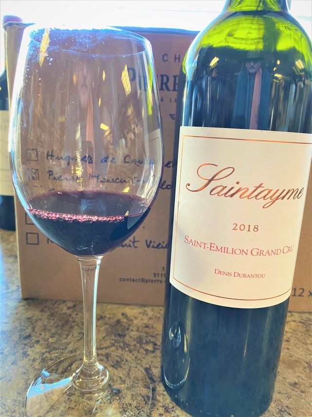 Saintayme Saint-Emilion Grand Cru 2018 by Denis Durantou was a great wine to begin with. The sad news is that Denis Durantou passed away in May at the young age of 62 and he was the owner and winemaker at Chateau L’Eglise Clinet, La Petite Eglise Cruzelles, Montlandrie, La Chenade and Saintayme. For a Saint-Emilion Grand Cru this is a very reasonable priced wine and the wine comes from a nine-hectare parcel of thirty-five-year-old Merlot vines. This wine is pure Merlot and probably aged for nine to ten months in oak, of which thirty percent is new. The tannins were a bit strong, but with the black fruit and some red fruit already blending, especially with a soft red fruit nose, it was very easy to drink and I think that it would be perfect now or even ten years from now, especially since I am known to forget about wines and let them mellow. I really can’t think of a better way to spend an hour or so, then with tasting some wines.