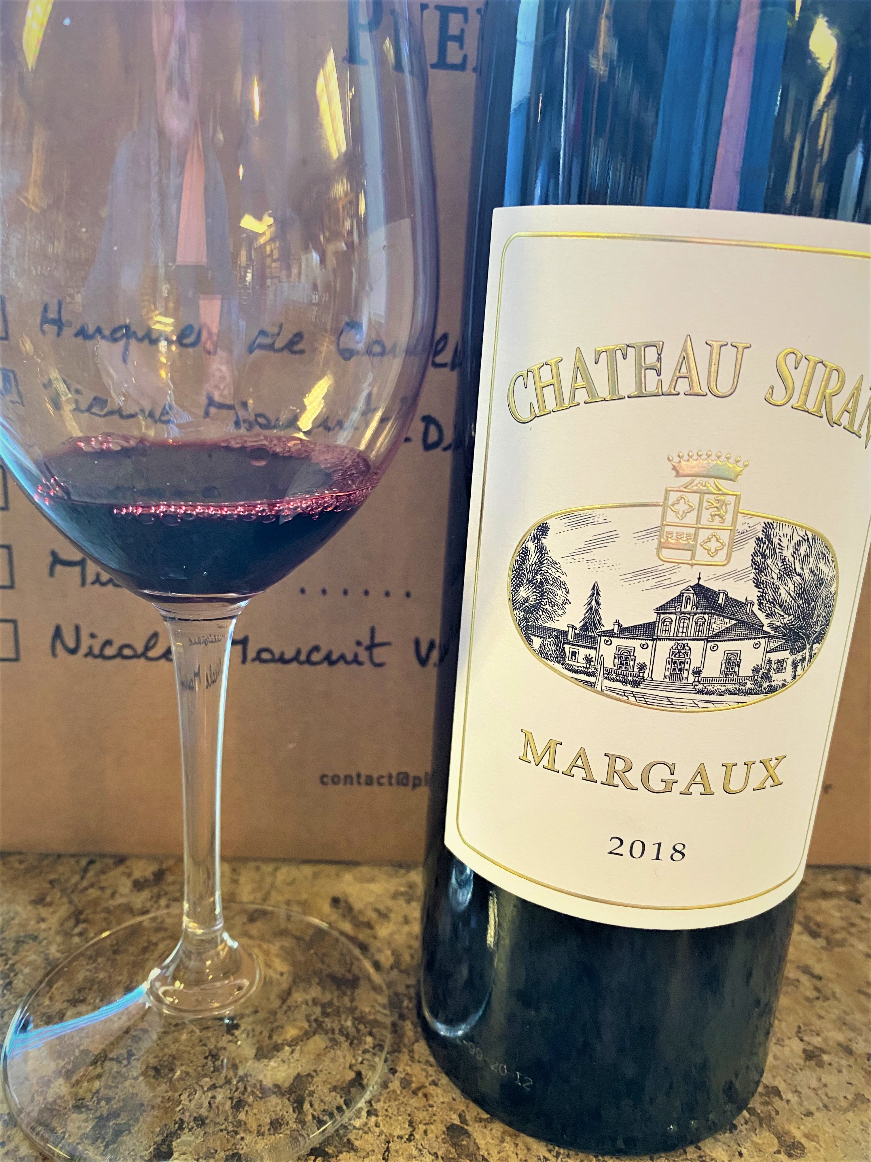 Chateau Siran Margaux 2018 was a charming wine that I was tasting and when I looked at my tattered “bible” The Signet Book of Wine by Alexis Bespaloff (1971) that I have been citing and using since high school rated this wine as a Crus Bourgeois worth watching for. The estate goes back to a land grant from the church to Guilhem de Siran in 1428. By the end of the 17th Century, they were producing wine and during the next century they were developing a strong reputation. The Miailhe family has owned the property since 1859 and in 2007, the estate is run by the seventh generation of the same family. The estate has twenty-five hectares of vineyards in Margaux planted with Merlot, Cabernet Sauvignon, Petit Verdot and Cabernet Franc. Also on the property is nine hectares that produce a wine for them as a Bordeaux Superior, another two hectares that is Haute-Medoc, and they even produce a second estate wine that carries the Margaux appellation. The average age of the vines are thirty-years of age, but there is one parcel of land that was planted in the 1920’s. The fruit is all hand picked, de-stemmed and sorted a couple of times. Initial fermentation is done in Stainless Steel, and the maceration and malolactic fermentation takes eighteen to twenty-four days in oak; then the wine is aged for twelve months in French Oak, of which thirty-five percent is new. Even though the estate is planted with more Merlot, this wine is forty-five percent Cabernet Sauvignon, forty-four percent Merlot and eleven percent Petit Verdot. The winery feels that this wine will be at its apex in twenty to thirty years. Now of all the Communes in Bordeaux, I have probably drunk more Margaux wines over the years, and this was just a classic and elegant example, even in its youth. It was a beautiful wine.