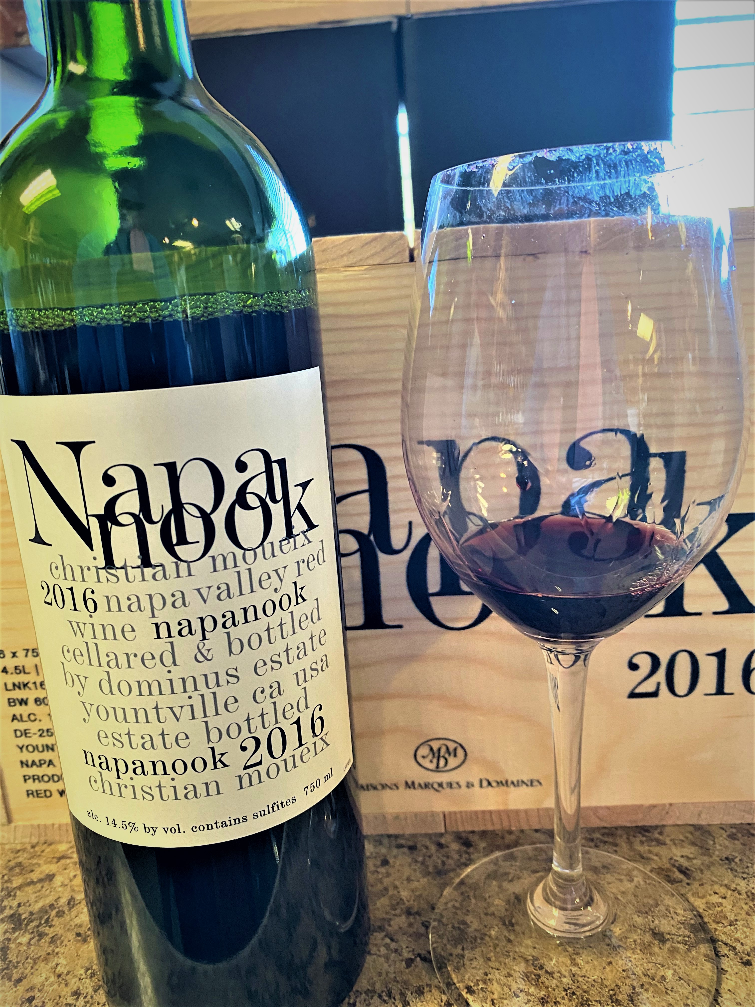 Dominus Estate Napanook Yountville 2016 by Christian Moueix of Chateau Petrus; and I once wrote that I never wanted to stop admiring the nose on a Dominus Estate wine. Christian Moueix has had part ownership since 1982 and ran the estate concurrently with his family business in Bordeaux until 2008. The estate is based on the Napanook vineyard, which was one of the first sites planted in grapes in Napa Valley. George Yount (Yountville) began the vineyard in 1838 and the fifty-hectare site has had many owners and steward of the land. Moueix went into partnership in 1982 and in 1995 became the sole owner; Dominus is Latin for Lord of the Estate. Dominus Estate is the flagship of the winery, Napanook is the mid-level wine and the entry-level wine is Othello. The vineyard is dry-farmed, both to conserve water and to control the yields and hence the quality of the fruit, the same practice that was started in the 1970’s at Petrus. The wine is eighty-four percent Cabernet Sauvignon, nine percent Petit Verdot and seven percent Cabernet Franc. The wine was aged for ten months in oak, of which twenty percent was new, and then the wine rested in bottles for another eight months before being released. The nose offered some lavender and cedar, while dark fruits mingled with big tannins and a nice long finish of terroir which always makes me happy. Another delightful wine, and a wonderful way to fill part of an afternoon.