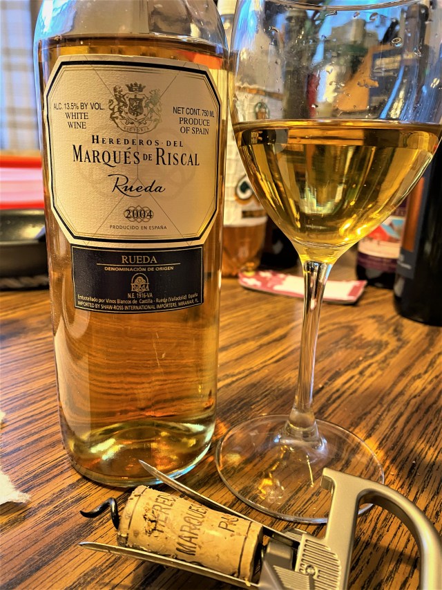 It was two in a row, one night as we were having some dinner. The first was Herederos del Marques de Riscal Rueda Blanco 2004, sometimes it is just referred to a Marques de Riscal Blanco. Marques de Riscal is one of Rioja’s oldest and most famous wine estates. The company was founded in 1858, by the Marques de Riscal who was a diplomat and he decided to bring French winemaking techniques back to his estate in Rioja. To this day, the current majority shareholder and winemaker maintains that title. In the 1970’s they expanded to Rueda and they are now the largest winemaker in this region and have been credited with reviving the wine industry in Rueda. The classic blend of Verdejo and Viura (Macabeo) was the common mix for the region, until 2020, when other more consumer recognizable wines were also allowed to be in the mix. This wine should have been green and flinty. With it being forgotten about in the cellar, even in a cool atmosphere and away from sunlight, the wine eventually succumbed to old age. The color was a beautiful golden color, if it had been a Sauternes, it would have been wonderful, unfortunately, the wine had oxidized and skunky, not because it was poorly made, but because it was too old and over the hill.