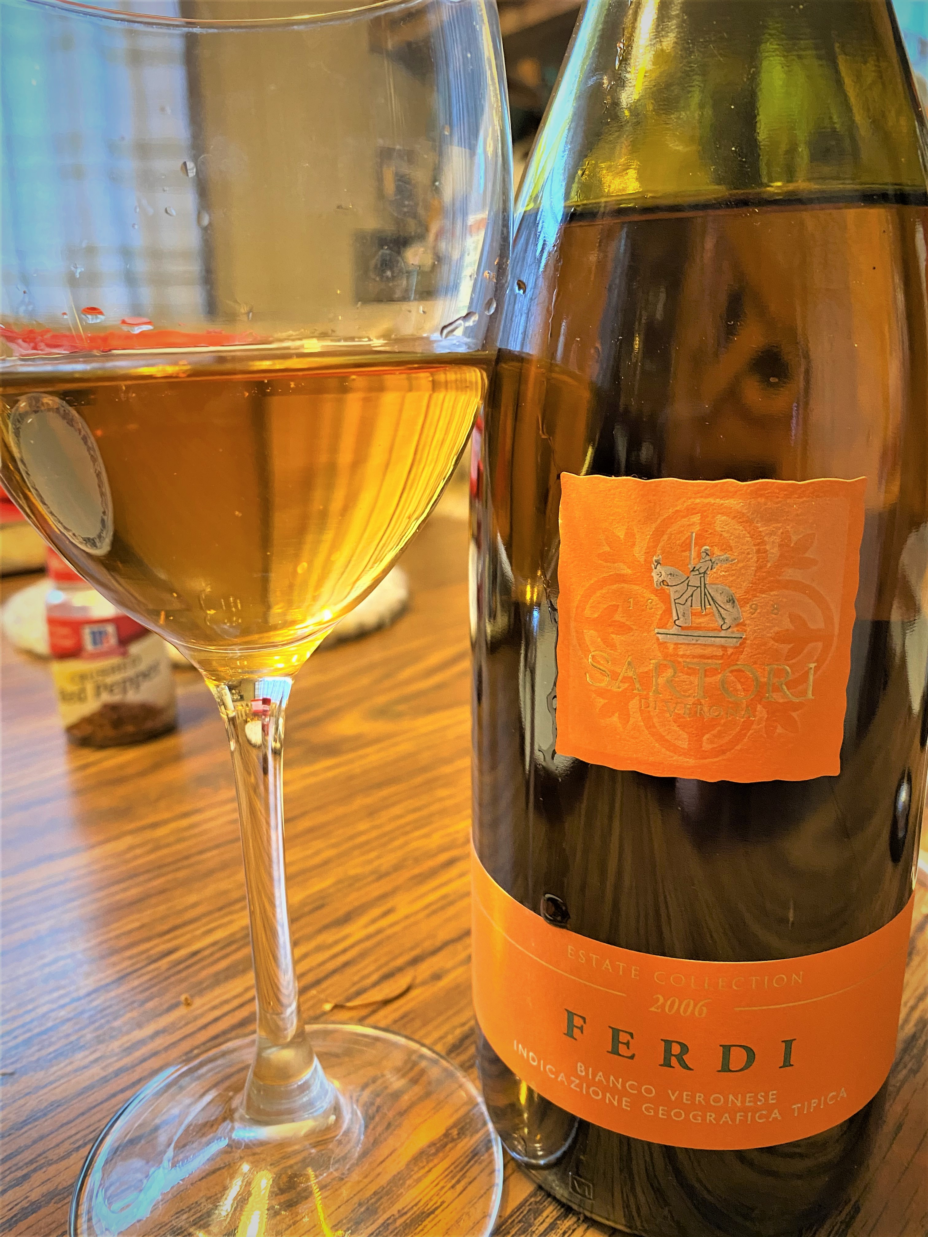 The second bottle was a Sartori di Verona Ferdi Bianco Veronese IGT 2006. Sartori di Verona specializes in the classic red wines of Verona. The family-owned estate was founded in the latter part of the 19th Century in the center of the Valpolicella wine district. In 2002 they joined together with Cantina Sociale di Colognola and expanded in to the grape varieties of Soave and Valpolicella. The wine is made using the Garganega variety that is the mainstay of Soave, but the grape itself is not that recognizable, even though it is one of the most planted grapes in all of Italy and can be both dry or sweet, and is used by itself or blended, a very versatile grape in Italy. Verona IGT was created in 1995 and encompasses all the wines made in Verona, not covered by their own appellations. It covers red, white and rosé, still and semi-sparkling, dry or sweet. As to the white wines, it can be a single variety or blends and the Garganega grape is usually the mainstay. Where this wine should have had aromas of peach, almond, apricot and baked apples, it was totally oxidized and offered a wretched nose. I am not giving up with out a fight, as we have more surprise winners than losers so far.