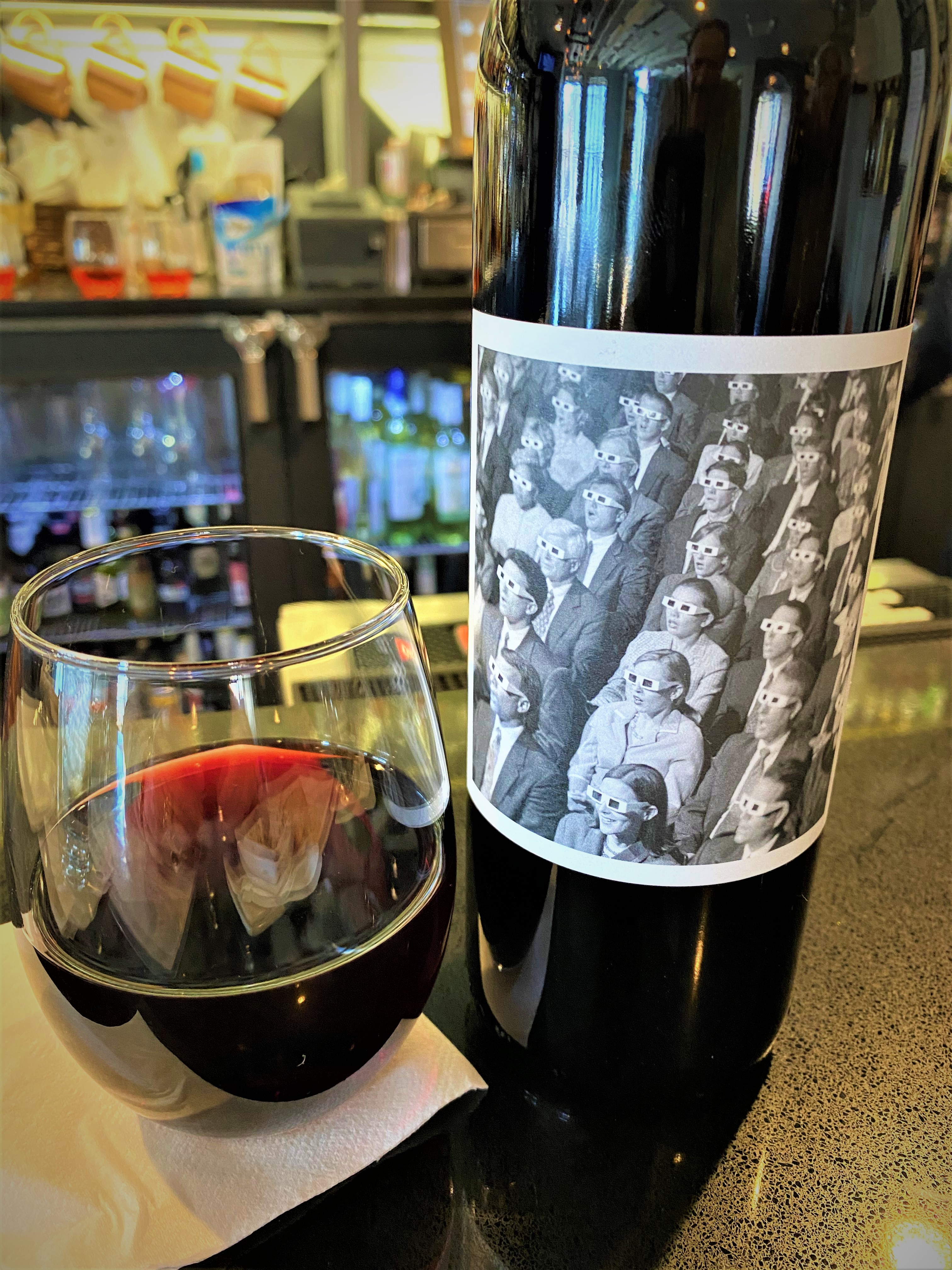 I had The Cult Wine Cabernet Sauvignon Lodi 2017 of Middletown, California. A very curios modern winery with no history to track. They use the same label artwork for their three wines, a photo circa 1950’s of a well-dressed audience with the cardboard 3D glasses from the early trial films. The sepia toned label is used both for the Cabernet Sauvignon and for their Sauvignon Blanc, which are both carrying a Napa Valley appellation. The black and white version label is used for their Cabernet Sauvignon from Lodi. All the wines carry the tag line “Do you see what we see?” The wine is a blend of eighty-six percent Cabernet Sauvignon, eight percent Petit Verdot, four percent Petite Sirah and two percent Merlot. The wine was aged for fifteen months in French Oak, of which twenty-five percent was new. It was a very nice wine and what I expected from Lodi, as I have been enjoying every wine that I have discovered from there. It was rather a big, fruit forward Cabernet Sauvignon, medium tannins and a nice finish. It was a nice night and it felt good to be in a restaurant again.