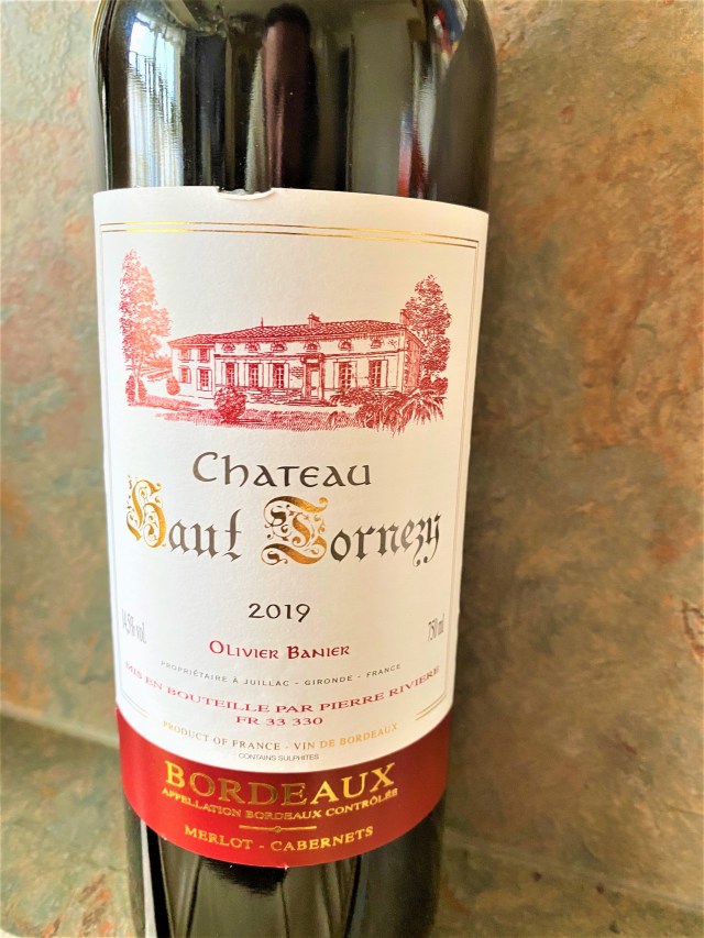 From the Old World is a bottle of Chateau Haut Tornezy Bordeaux 2019. Olivier Bannier, is a fifth-generation winemaker and his family has been there for over one-hundred-twenty years. The vineyard is located in Juliac, a village of 259 people, in the heart of Entre-Deux-Mers. The land around Juliac is known for their rolling hills, excellent drainage, a mix of different sun exposures and some of the best terroir in the area. The terrain is a mixed soil of sandy-clay. The wine is a blend of sixty-five percent Merlot, fifteen percent Cabernet Sauvignon, fifteen percent Cabernet Franc and five percent Malbec. The tasting notes for the wine offer note of red current, green olive, licorice and truffle. A classic Bordeaux with full red fruit, soft tannins, balanced and finishing with a spicy cherry finish. It sounds great to me, as I am partial to Merlot based Bordeaux wines.