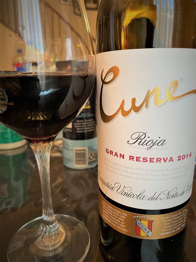 Later we went to our son’s house for dinner, though I tried to get him to let us take the family out for dinner, as I didn’t want his wife to have to work overtime for us. He assured me, that she would not as he was going to get pizza. Little did I know that he ordered enough pizzas to cater a party at Fort Nellis Air Force Base. I thought maybe his two children had voracious appetites for pizza, but he had enough left over, that they would be eating pizza for a week, though it was excellent pies. We offered to bring some wine to go with the pizza. We started off with Santa Margherita Pinot Grigio Valdadige 2019 which I knew would please my Bride. The estate was founded in 1935 by Gaetano Marzotto, and today is widely renowned for its popular Pinot Grigio wines, though they also have vineyards and wineries all around Italy. They are rather famed and even credited with creating the Pinot Grigio of today, by not allowing the juice to be with the must, so that the tell-tale rust or pink that is prevalent from the grape is not seen. After the pressing and fermentation, the wine is aged in Stainless Steel until the bottling for a nice crisp wine that is very easy drinking. The Alto Adige or the Sud-Tirol is the farthest northern wine making region in Italy and it is quite Germanic and Pinot Grigio is the single largest producing grape for the area. Valdadige is from Trentino-Alto Adige and the Adige Valley. The other wine was also going to be Italian, in keeping with the pizzas, until I saw CVNE “CUNE” Gran Reserva Rioja 2014 and while we encounter plenty of Rioja wines and even quite a few Rioja Reserva wines, the Gran Reserva designation is not that often seen. “CUNE” actually represents Companie Vinicola del Norte de Espana, a winery that was founded in 1879 in the Rioja Alta district which is considered the best of the Rioja area. The wine is a blend of Tempranillo, Graciano and Mazuelo which is the classic trio for Rioja, but to carry the Gran Reserva status it has to be aged for a minimum of two years in the barrel and then then aged three years in the bottle prior to being released for sale. I may be biased from my youth, but an excellent bottle of Rioja almost goes with everything in my book. It was excellent and even got kudos from the non-wine drinking members of my family and of course garnered extra brownie points with my Bride.
