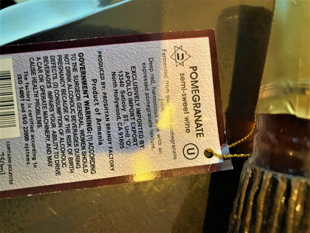 What really caught my eye as I was looking at these curios was that they were from the Proshyan Brandy Factory of Yerevan, Armenia and the “bottles” contained their Semi-Dry Pomegranate wine. Pomegranate wines, and the fruit itself have long been a staple product in Armenia. Armenia has been considered one of the cradles of civilization and they have long been known for producing beer, wine, brandy and later even Cognac. With all of the grapes grown in Armenia, brandy evolved in the Nineteenth Century and brought Armenia fame. After the Genocide, and then Armenia becoming Armenia SSR under the Communists, all the brandy distilleries were not allowed to produce their own product, but they could sell their product to the Yerevan Brandy Company, because the Socialists or Communists were very non-understanding and totally against the concept when it came to the Free Market. When the Soviet Union collapsed, some individuals were able to grasp the concept of individualism, capitalism and pride of craftmanship.