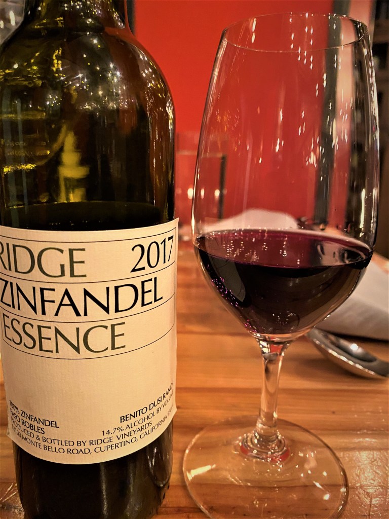 The other dessert wine that we shared was Ridge Vineyards Zinfandel Essence Benito Dusi Ranch 2017, that was quickly sold out and the only other vintages that I have found was from 2003, 2001 and 1986, but this was the first from the Benito Dusi Ranch. Ridge Vineyards is one of the old and famed California wine producers, founded in 1962 and based in the Santa Cruz Mountains, but they also have vineyards in other parts of the state. They are famed for their Cabernet Sauvignon based “Bordeaux” blends, as well as their Zinfandels, Petite Sirah, Carignan, Grenache-Mataro blend and a Chardonnay. The Benito Dusi Ranch is three miles south of Paso Robles and the only vineyard for Ridge in the Central Coast. The ranch is twenty-five acres of Zinfandel planted in 1922. The grapes for this wine were picked at extreme ripeness, the free-run juice was fermented quickly, and then the press wine with the increased sugar content was added back and it naturally stopped fermentation. The fruit was hand-harvested, destemmed and crushed, using only native yeasts. The juice was aged for eleven months in air-dried American Oak, of which sixty percent was new. There were fourteen and a half barrels produced of this wine. On the average, this type of wine occurs maybe once every five years. The wine was a deep garnet, with a nose of dried cherries, plums and spices. The taste was opulent with black cherries, terroir and a lively-fresh acidity that finished with a very long count finish that just totally impressed this old jaded wine drinker, and my Bride was very excited by it, as well. Our dinner experience at Vertical was wonderful and we look forward to the next time.