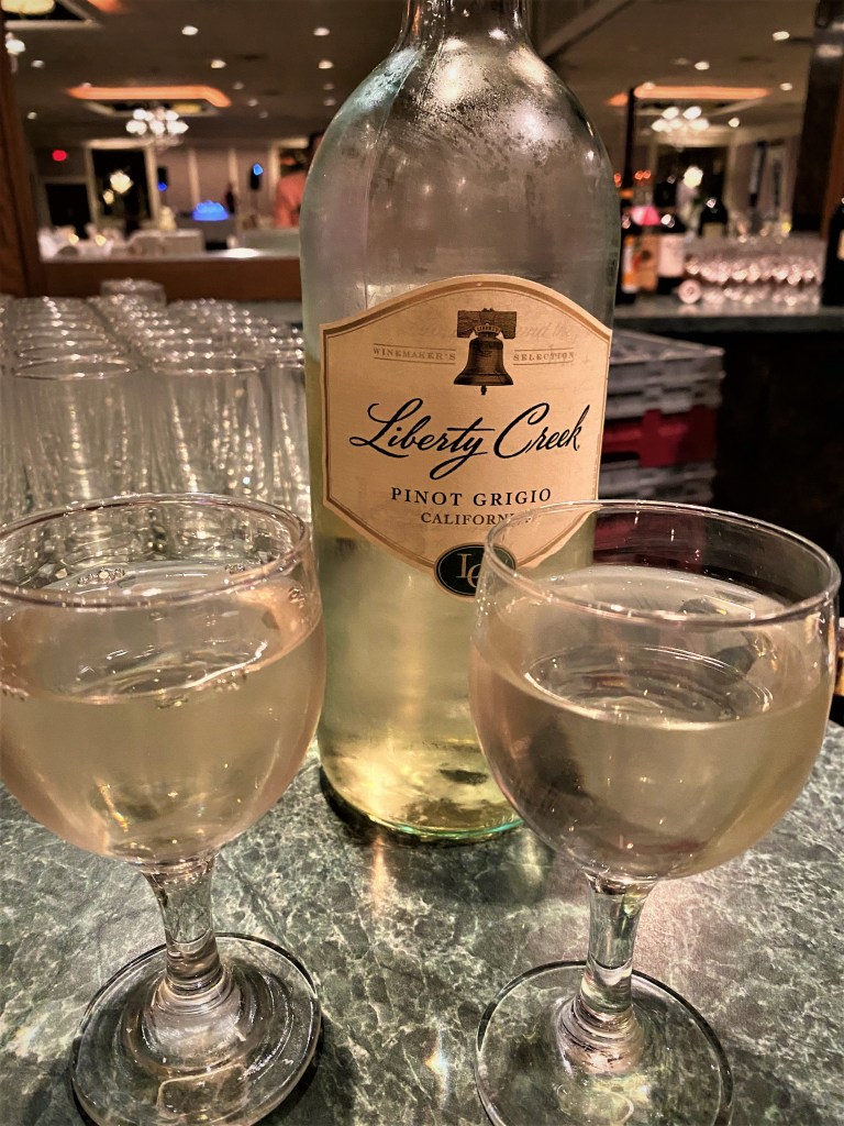 My one constant that I find about catering halls and companies is that they go out of their way to find the most profitable wines for themselves at the expense of those that try to enjoy wine. The wine selection was Liberty Creek Merlot, Cabernet Sauvignon, Chardonnay and Pinot Grigio and all were non-vintage and what I would classify as jug-wine. These are all massed produced California wines and I tried two of the wines and they both were much sweeter than I had expected, but perhaps that is what is wanted by young couples at weddings. Now, I call them jug-wines, but they actually come in magnum bottles, because I am sure that size is more convenient compared to the old gallon jugs that one still sees every now and then. Liberty Creek as best as I can ascertain is an independent wine maker offering eleven different wines basically for restaurants, caterers and hotels. Almost all of the wines have a California appellation, though a few have an American appellation. The wines are entered into competition and they have won awards in their classification, and they are also known as being some of the most affordable wines from California. I did notice that a lot of wine was being poured, so I guess they have researched and know their designated market very well.