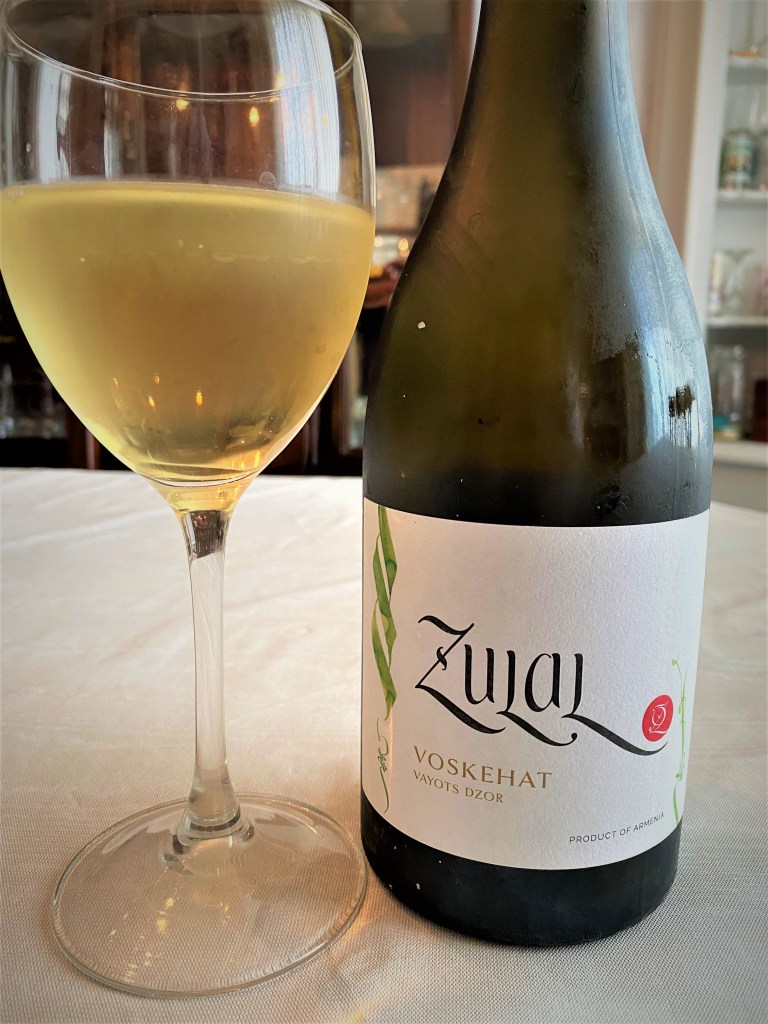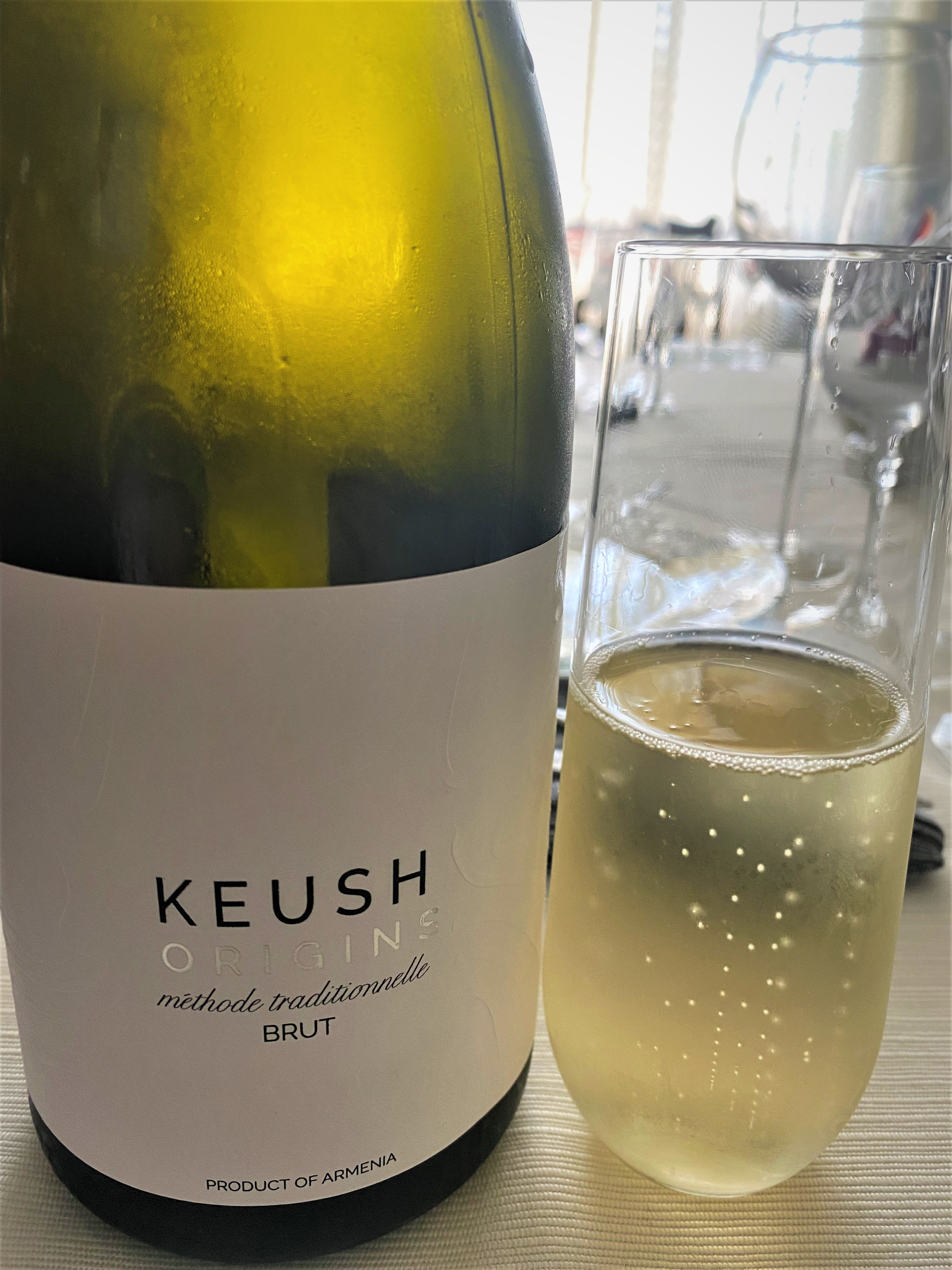 Then we had Cheese Boereg, an appetizer that is made with layers of Phyllo dough that is folded over White Brick cheese. I guess depending on the cheese used, this dish could be sweet, but the version I know is savory, and it has been a mainstay ever since I can remember. It is also a hit, with anyone that tries it, and thankfully the Armenian caterer makes the dishes very similar to how my grandmother made the dishes, so unfortunately no one bothers to make these dishes from scratch. This appetizer was paired with Zulal Voskehat Classic Vyots Dzor 2019. The Zulal and Keush wines are imported by Storica Wines who offered the samples for my review. Storica Wines are interested in the growth of Armenian wines, especially with indigenous grapes, some of which have a six-thousand-year history with Armenia and its winemaking. Zulal means pure in Armenian. Zulal Wines was founded by Aimee Keushguerian in 2017 and the fruit is sourced from about forty grape growers in the villages of Aghavnadzor and Rind, as well as the Arpa Valley in Vayots Dzor region. Voskehat is one of the most recognized varietals in Armenia and some of the vines are Pre-Soviet era and definitely pre-phylloxera and the average age of the vines are fifty to one-hundred years of age. What saved this varietal is the demand by the Soviets for brandy and their version of Sherry known as “kherez.” The wine undergoes natural fermentation in Stainless Steel to preserve the acidity of the wine and is bottled directly from the tank, with a production of three-thousand cases. While they were enjoying the savory Cheese Boereg, I was explaining that this was pure Voskehat and this was a winner both in pairing and with drinking. The consensus here was that it had a nice floral nose, with enjoyable salinity (brightness) with notes of apricots and a nice finish of flint, is what they all agreed on.