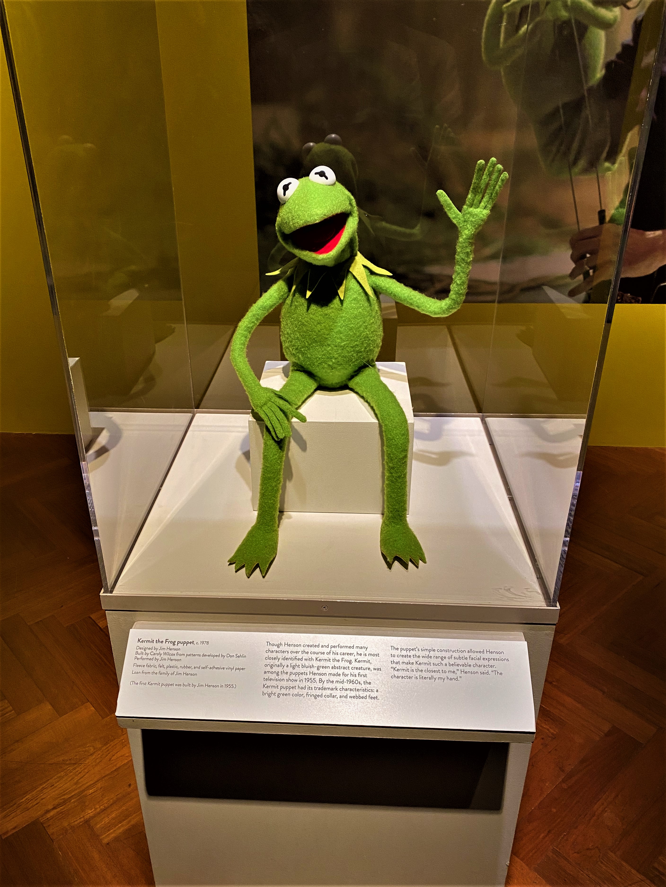I thought that I had appreciated Jim Henson from the time my children were watching Sesame Street and then the Muppets in their various television shows and movies. I discovered that I had actually started appreciating his magic in my youth going back to 1963 on the Jimmie Dean Show and his Rawlf/Rowlf the dog and later on The Hollywood Palace. So, I predated Kermit the Frog and most of his other creations. It was a beautiful exhibit featuring films, drawings and of course the puppets. I also got very nostalgic as there was a huge continuous montage of perhaps a hundred different episodes going on at the same time, so that you could not concentrate on all the actors and actresses that appeared on The Muppet Show, and of course each clip had to end with Statler and Hilton. As I looked around, I think that I realized that the parents were having more fun compared to their children that they had in tow.
