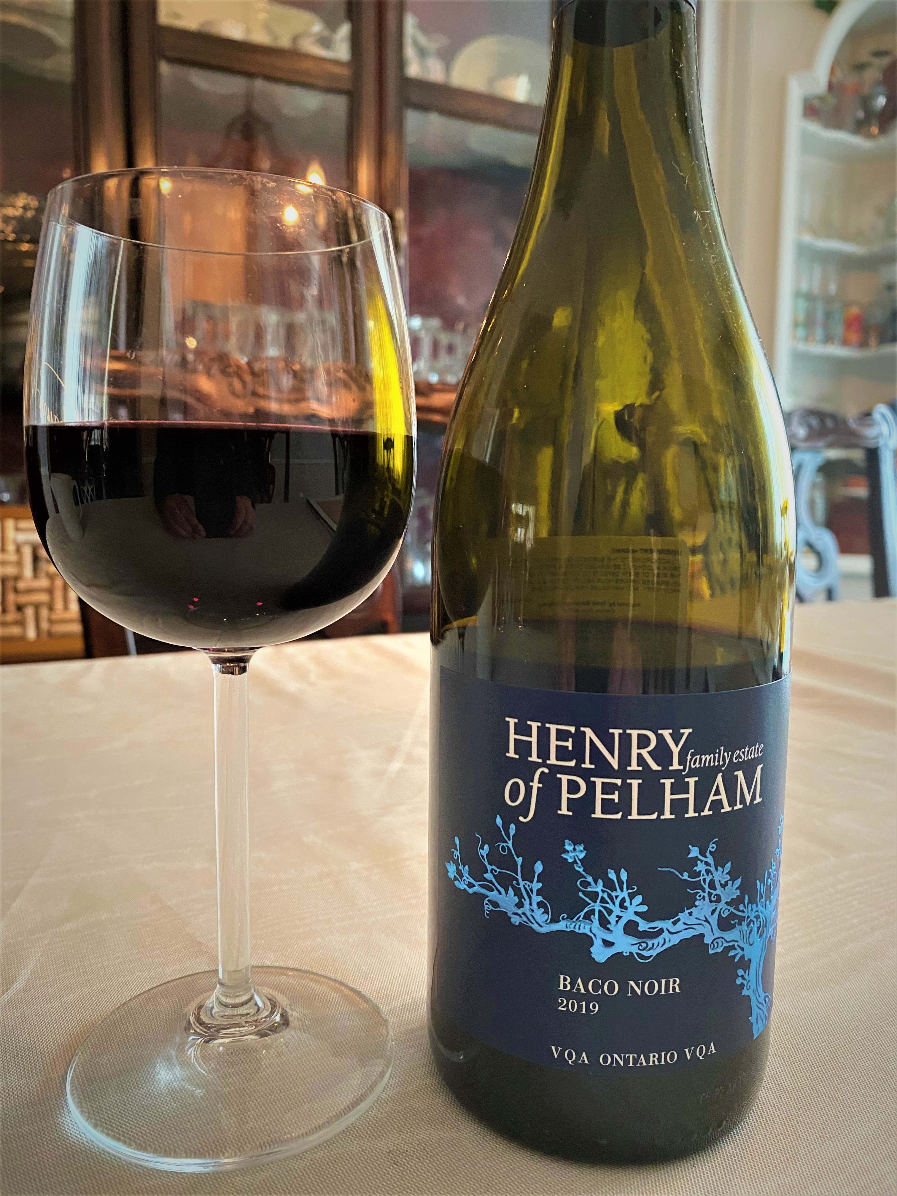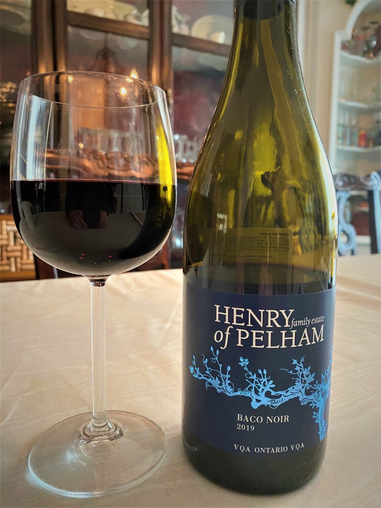 Henry of Pelham Family Estate Baco Noir Ontario VQA 2019 was the first wine from Canada that I had from my local wine shop, and it is a winery that I knew of, but we had never visited while we were on either of our trips to Niagara-on-the-Lake region. Three sons ages nine, fourteen and sixteen were the creators of the original vineyard that they planted shovel by shovel in 1984, while their parents were back in Toronto. The first harvest was in 1988 and they didn’t even have barrels initially for the first harvest. The wine was successful and they were one of the early wineries for the area. This fruit is grown in the Short Hills Bench of the Niagara Peninsula. Baco Noir is a Cold-Hardy hybrid that was developed for North America, especially in the North-eastern parts of the United State and Canada, but it is also found in Michigan and Ohio that I know of for sure. The grape is a blend of the French Folle Blanche and the local Grande Glabre. It is a popular grape for Northern climes as the grape matures quickly on the vine, with high acidity and the winegrowers try to extend the growing season as long as possible to tame the acidity. These grapes are grown on the original vineyard site of Henry of Pelham, and was one of the earliest known planting of grapes for Canada in 1842. The wine went through full maceration and fermentation in Stainless Steel and then aged for six to eight months in American Oak, of which twenty-four percent was new. The wine was a nice dark red with notes of currants and blueberries, some spice and a nice toasted oak finish. So, I guess it is time for me to take off my chesterfield and go into the parlour and watch “Hockey Night in Canada” -eh?