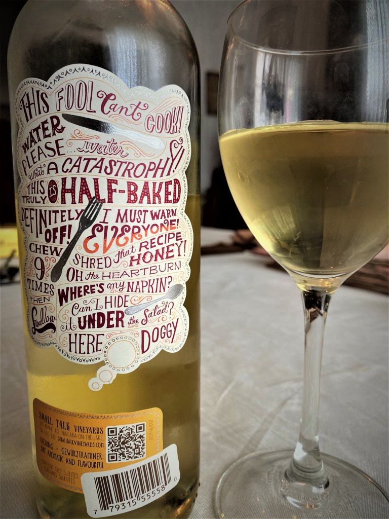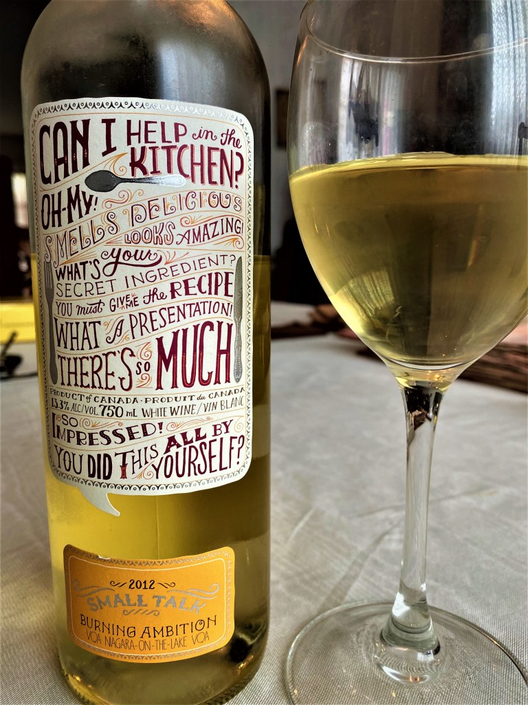 One of the mislaid bottles of wine was from the Niagara-on-the-Lake wine region, or as the locals like to say NOTL. We visited and tasted and left with wine from Small Talk Vineyards. The closest that we found to some of the small wineries of Michigan was Small Talk Vineyards. They are a fifty-year-old private estate and as soon as you pull up to their parking lot, you know that it is going to be fun. Splashy vibrant colors attack you immediately. There is a huge sign saying “Come In, Come In.” You just know that it is going to be a fun visit, because they are having fun. The tasting room is like a patio with more vibrant colors. The wines are front and center, and in case you missed the bottle from what they are pouring from, there are huge posters on the walls duplicating not only the front label, but the back label as well, because the front is what you say, and the back, may be what you are thinking. The wines, were as much fun as the winery. Small Talk Vineyards Burning Ambition Niagara-on-the-Lake VQA 2012 was a Riesling and Gewürztraminer blend that was aged in Stainless Steel. They are a family-owned small batch winery, originally bought in 1954 as a fruit and poultry farm, and in 1985 they began planting a vineyard. It now has seventy-eight acres and grows eleven varietals. We had a nine-year-old white wine and we took a chance and chilled the wine to have with dinner, as we have had some great results with some older Riesling wines, as well as some older Gewürztraminer wines. We were very happy, as the wine was still youthful with a great floral nose, fresh fruit and just the right number of spices. When I just recently did a Google search, my original article on our visit was the sixth site mentioned, just a bit of bragging. Of course, it was our last bottle, and it made me think of the sign that they had on our way back to the parking lot “Good riddance, we thought you’d never leave.”