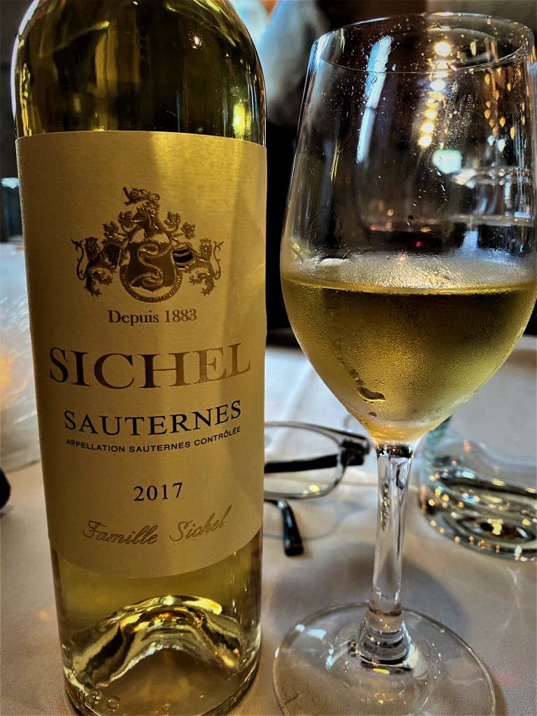 We were going to Petoskey, which is an historic town and once famed for all of the hotels that were congregated there. They are also famed for the Petoskey stone, which people like to hunt for, on the water fronts and beaches, and it is the State Stone. As soon as we knew the dates for Petoskey, we booked a dinner reservation at Chandler’s, as dinner reservations are now almost mandatory, because there are still all the people that wish to eat, but most of the restaurants have shorter hours and less staff working. We did get into Chandler’s and we requested a table in the wine cellar. Chandler’s is a restaurant that has been cobbled out of the basement and backside of Symons General Store, which is worth a visit on its own merits. We shared a plate, an appetizer of seared Hudson Valley Foie Gras and it came with Cinnamon Brioche, Strawberry Compote and Fresh Basil. A unique combination and the basil and the strawberry was a great touch, the brioche was a bit strong of a flavor, but it all melded together. We had a glass of Maison Sichel Sauternes 2017 from Famille Sichel to pair with the Foie Gras. The Maison Sichel collection is from their negocient side of the business. The wine is a blend of ninety-five percent Semillon and five percent Sauvignon Blanc from vines that are about fifty years of age. The wine is aged for ten to twelve months and they recommend that eight to ten years of cellar time before drinking, and that did not happen here. The wine is very balanced and was rather refreshing, which was excellent for pairing and it had a beautiful nose and color, what one would expect from a Sauternes.