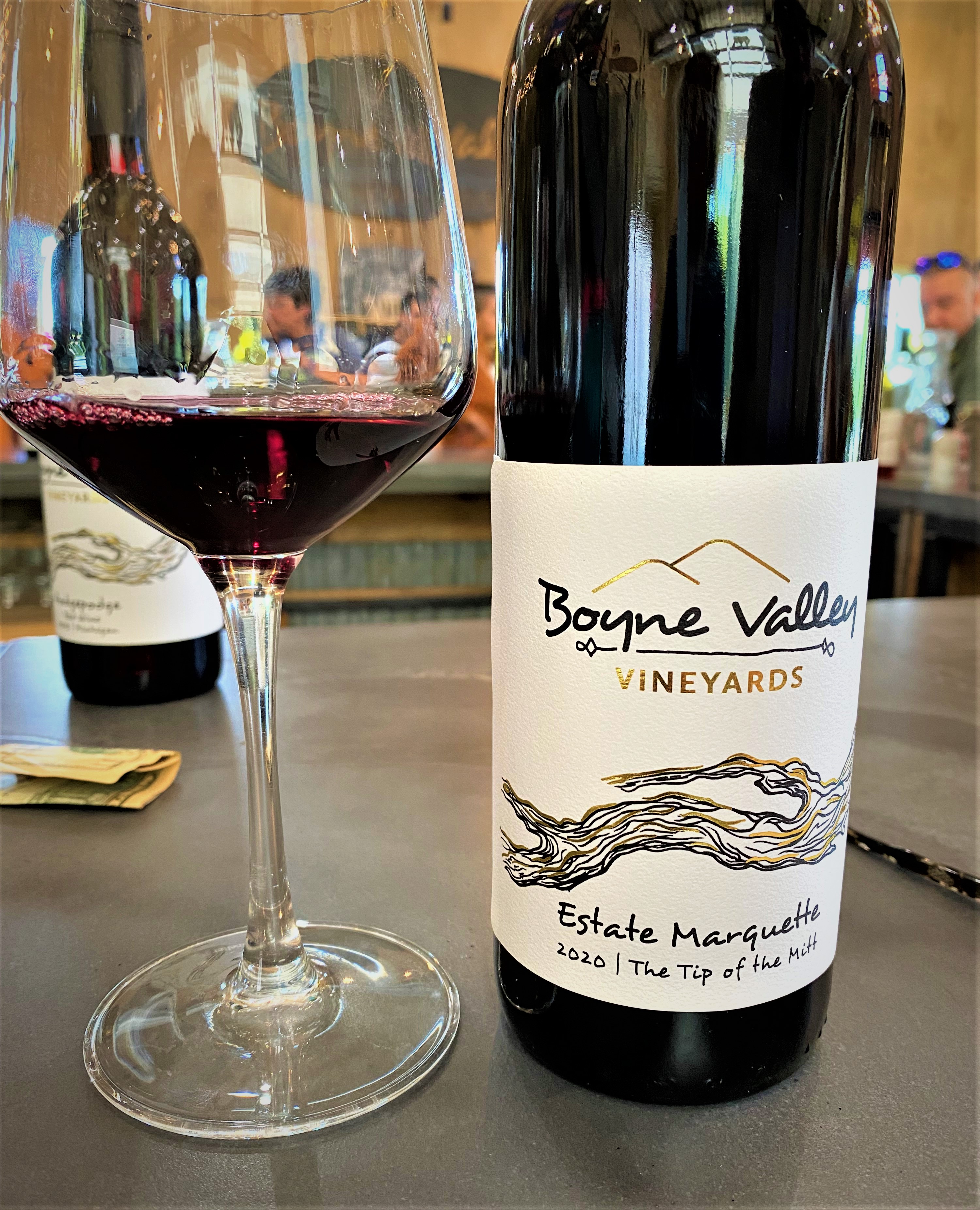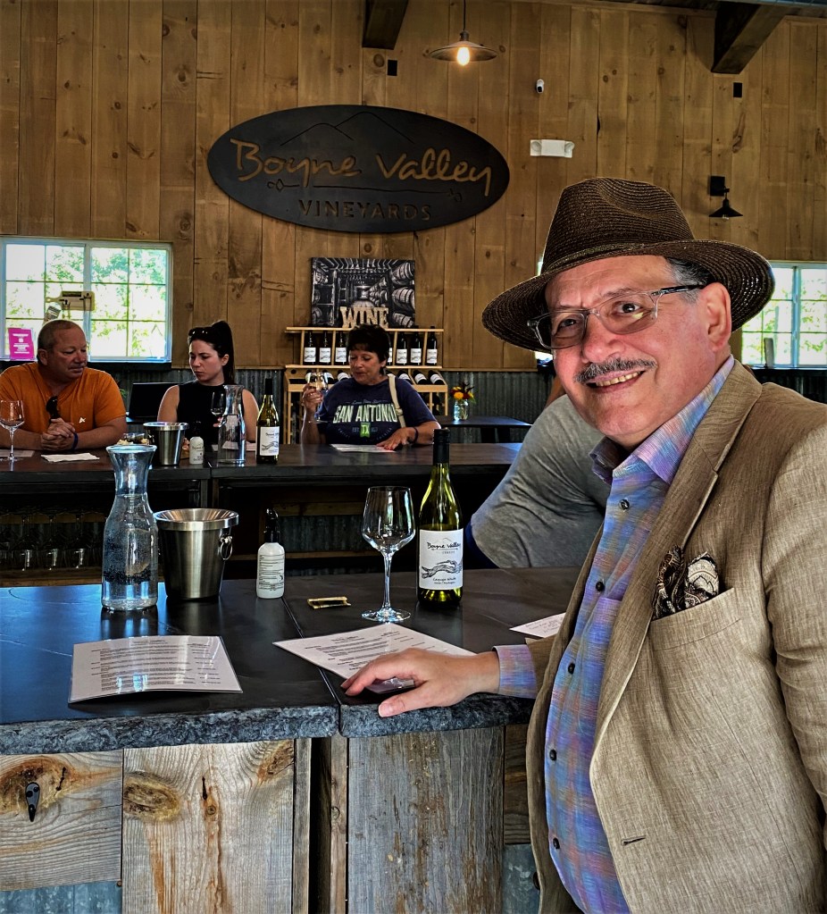 We enjoyed two red wines while we were at the winery. The first was Boyne Valley Vineyards Hodgepodge Red Wine Michigan AVA 2018. This wine is a blend of Petite Perle, Cabernet Franc, Cabernet Sauvignon, Marquette, Shiraz and Merlot; these varietals were from three different Michigan AVA regions, The Tip of the Mitt AVA, Traverse CityAVA and Lake Michigan Shore AVA. The wine was aged for two years in oak. An interesting wine that offered notes of blackberry and plum, with light tannins and a medium finish. The final wine of the tasting was their Estate Marquette The Tip of the Mitt AVA 2020 and was aged for three months in oak. This wine offered notes of Black Cherry, Currants and Blackberries with a medium body and a medium finish. We had an enjoyable visit and they helped us decide on our last dinner while in the Petoskey area.