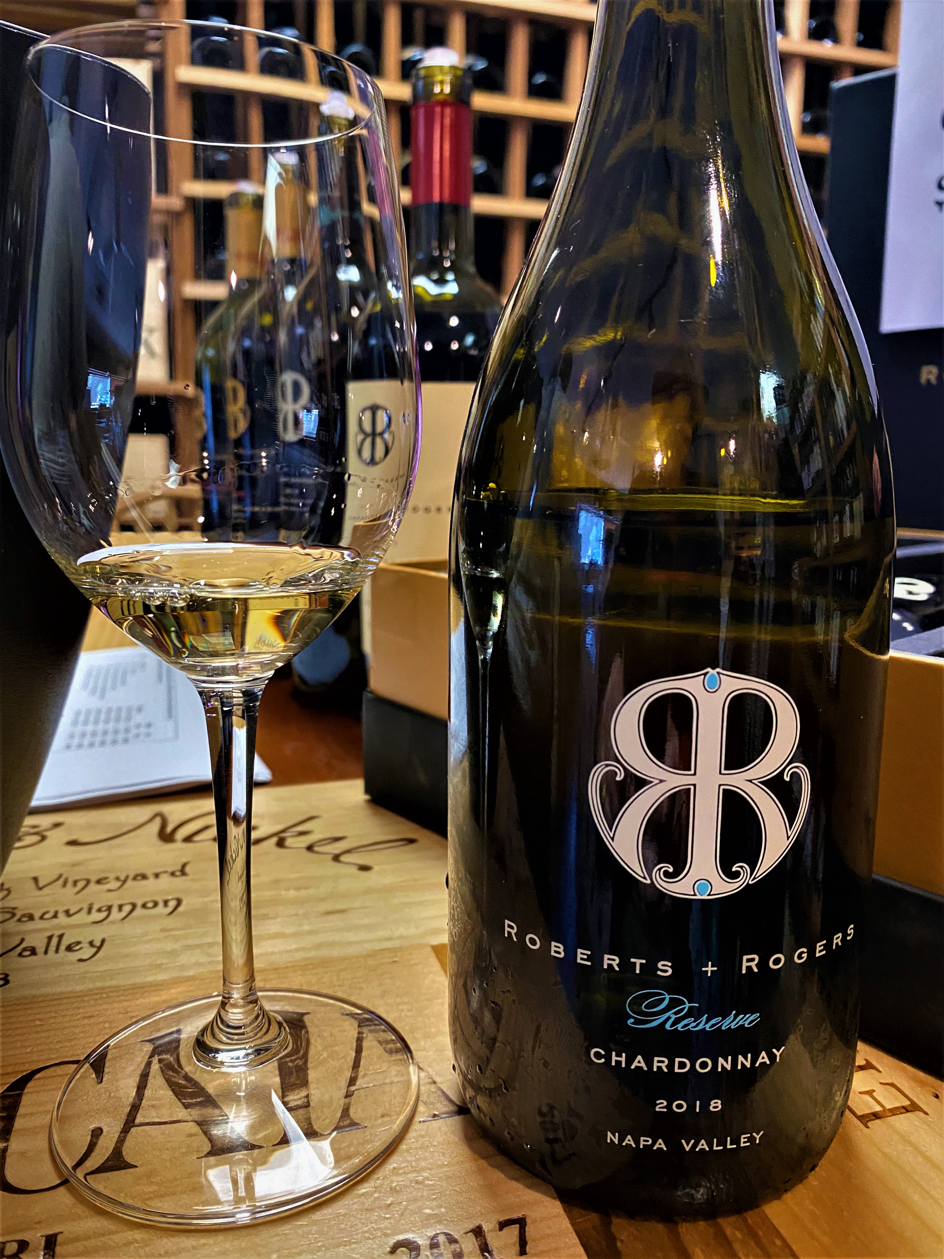 We started off the tasting with a Roberts + Rogers Reserve Chardonnay, Napa Valley 2018. A great way to start as this wine was aged for almost twelve months. Sixty percent of the juice was aged in French Oak and forty percent was aged in Stainless Steel and then the two juices were blended and then finally bottled. It was a stellar example of a California Chardonnay, that would probably fool people in a blind taste test. It was crisp and buttery and very smooth, with some floral notes and a nice finish that evoked another taste.