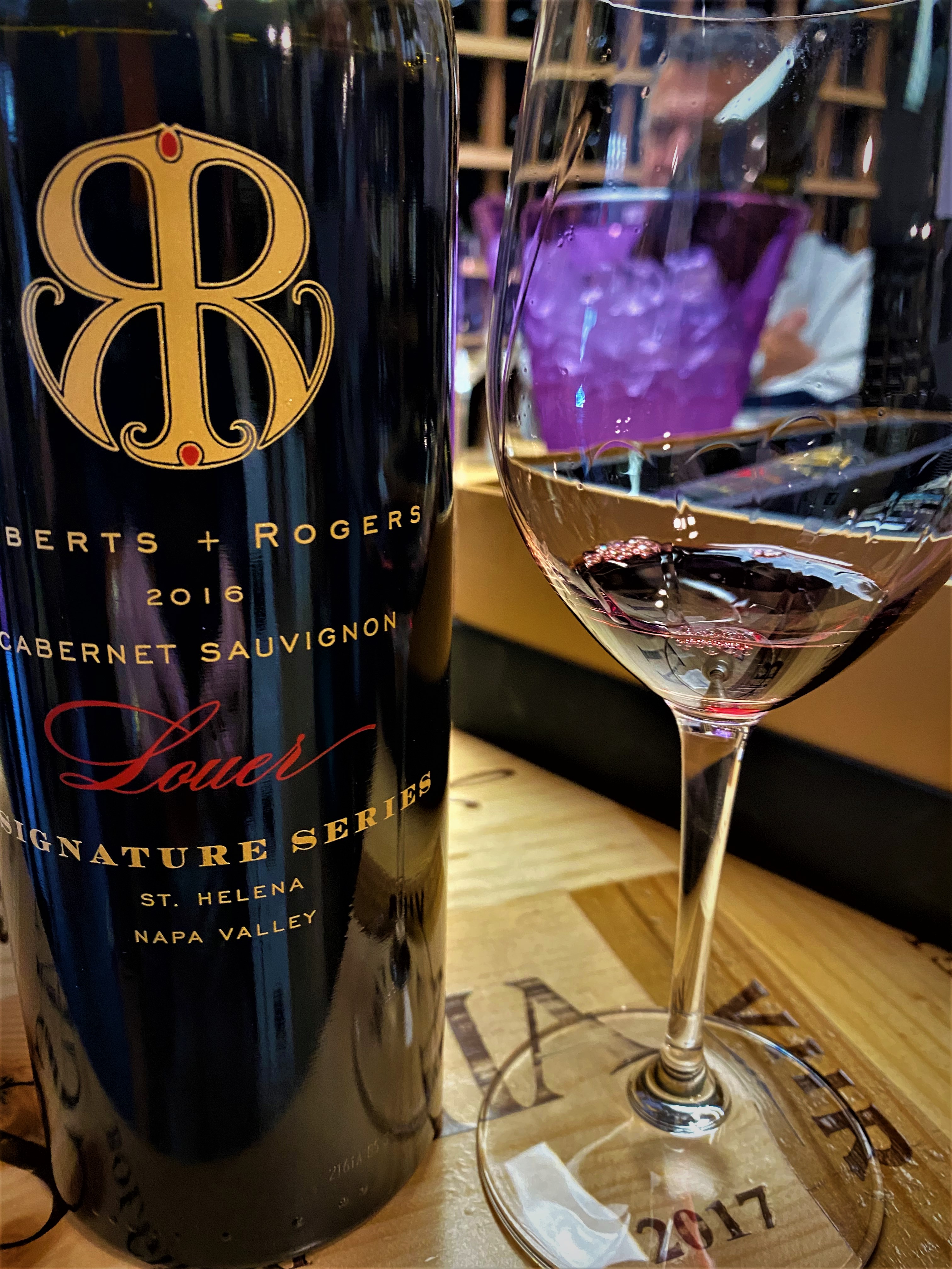 We then tried the Roberts + Rogers Louer Signature Series Cabernet Sauvignon, St. Helena 2016. It was nice listening to him explain, in a kind of Jimmy Stewart demeanor that his winemaker said that he needed a “signature” wine. The first for this label. This wine was also aged for two years in new French Oak, but only the best barrels and a very limited production. This wine was also a beautiful Cabernet, even bigger and bolder and more savory compared to the Louer Family Cabernet. Price-wise, it is not the bargain that the Louer Family is, but it really was an impressive wine.