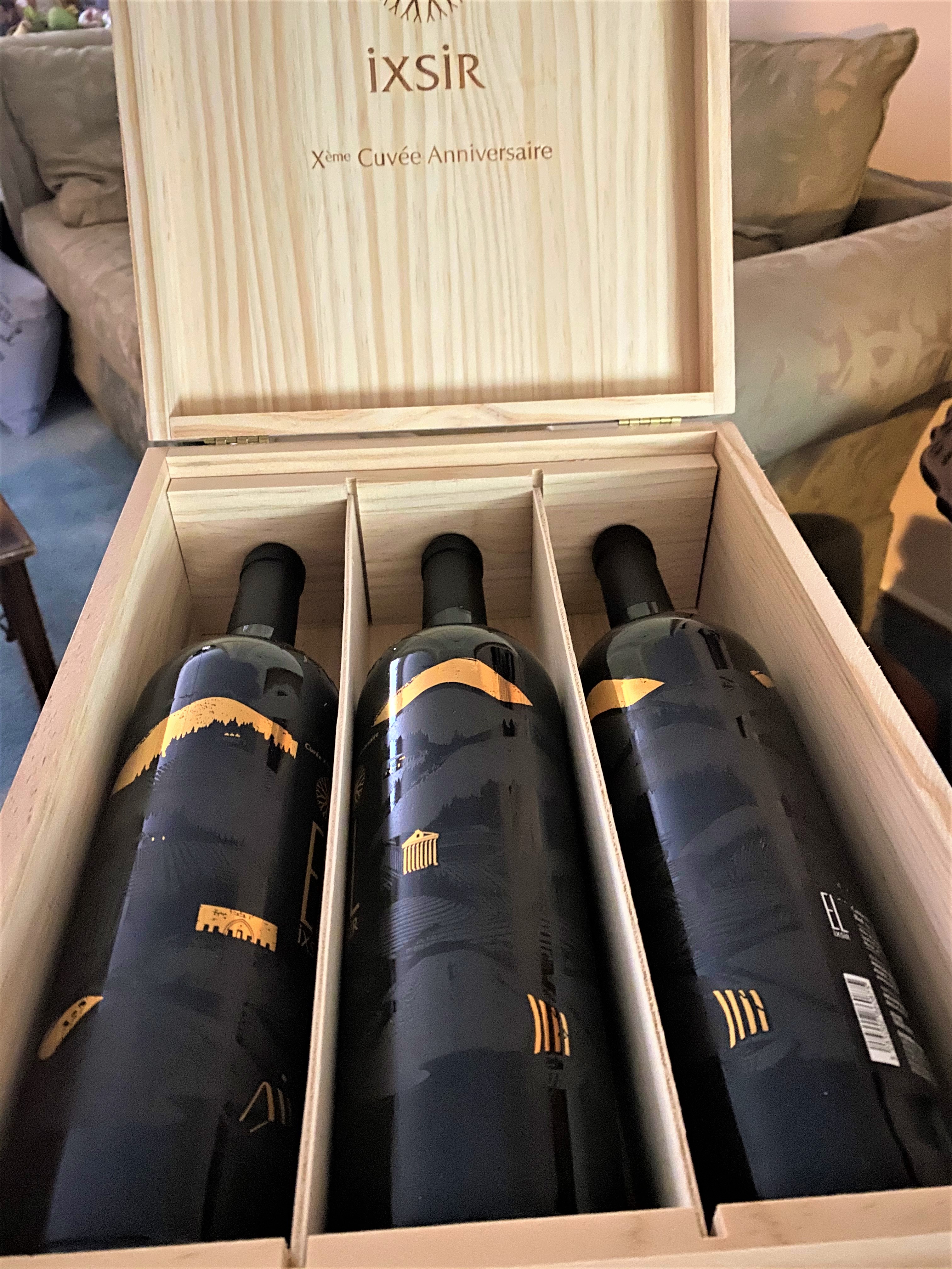 We have quite a collection of Ixsir wines, but one of the most interesting wines, and I still have the three-pack intact is EL Ixsir Cuvee X’eme Anniversaire Red Non-Vintage. It was number sixteen of an issue of one-thousand, and the box held three bottles of this special edition wine as well as a beautiful “coffee-table” book The Wines of Ixsir. The EL Ixsir Cuvee X’eme Anniversaire Red Non-Vintage is a special bottling of three very recent vintages of their EL, which is their top cuvee and a blend of fifty-five percent Syrah, thirty-five percent Cabernet Sauvignon and ten percent Merlot. Each of the wines had aged for twenty-four months and then had been blended and aged in French Oak, of which half were new barrels. The concept of having the three bottles in the case was that the first bottle should be tasted in five years, and then at least ten years for the second bottle and the last should be held even longer. As a reference point, this wine was issued 30 April 2019 and the Wine Advocate awarded it a score of 93 Points and a suggest “Drink Date” of 2022-2040. When we tasted the wine, we were told that the 2014 vintage which was the real powerhouse of EL was leading this wine and it was big and inky and really overpowering; it was way too young and feisty to be properly enjoyed and there was real merit in cellaring this wine. I will discuss the six wines in the articles to come.