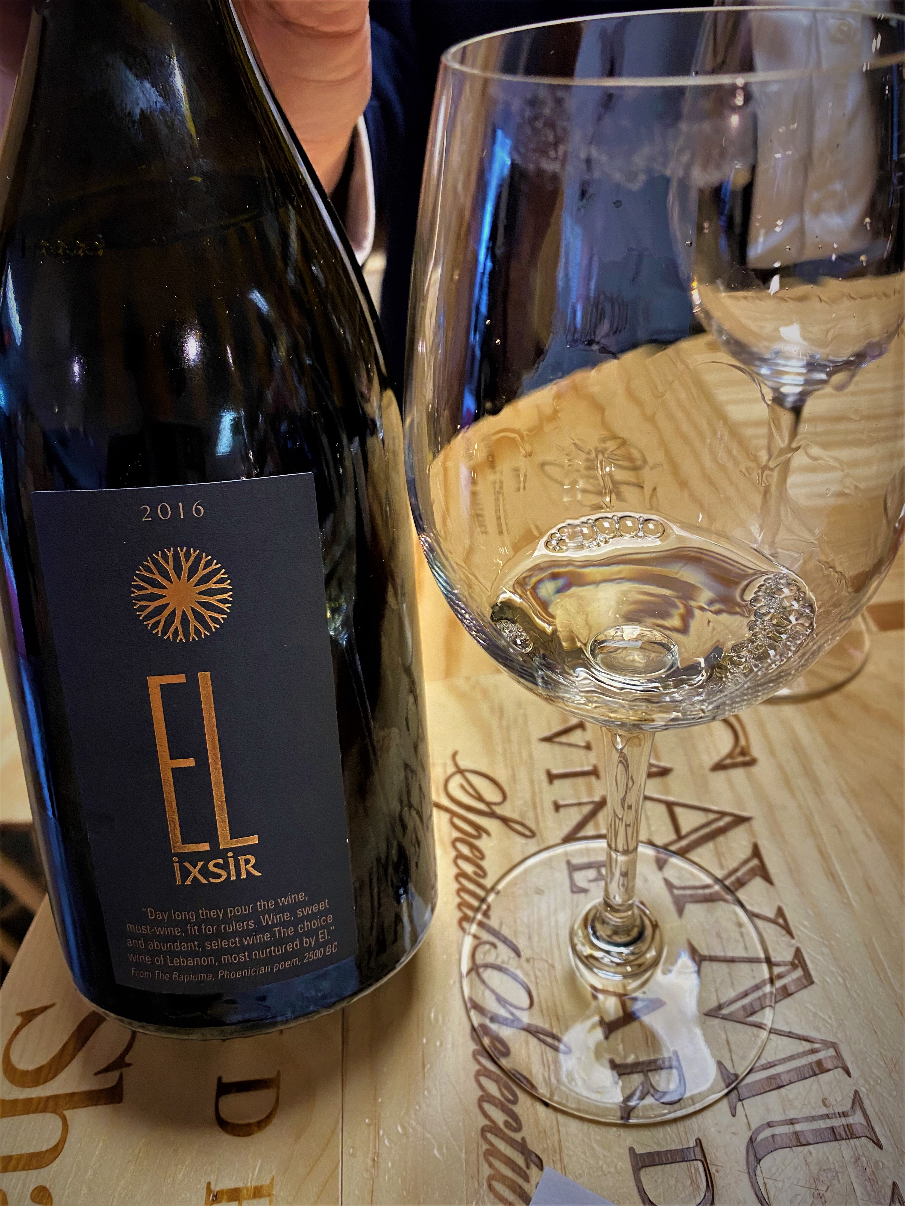 The other white wine that we tasted was Ixsir “EL Ixsir” White Batroun, Lebanon 2016. This wine is a blend of seventy percent Viognier and thirty percent Chardonnay and was aged on the lees for twelve months in French Oak, of which a third were new. This was an elegant white wine with floral notes, a full bodied dry white offering white fruits and spices, and a nice long finish of terroir. A wine that would hold its own with opening courses or pairing with dinner as a stand-alone. It offered depth and complexity, that one expects from a good white, and I have been finding that Viognier is great for cellaring as this five-year-old was totally fresh.