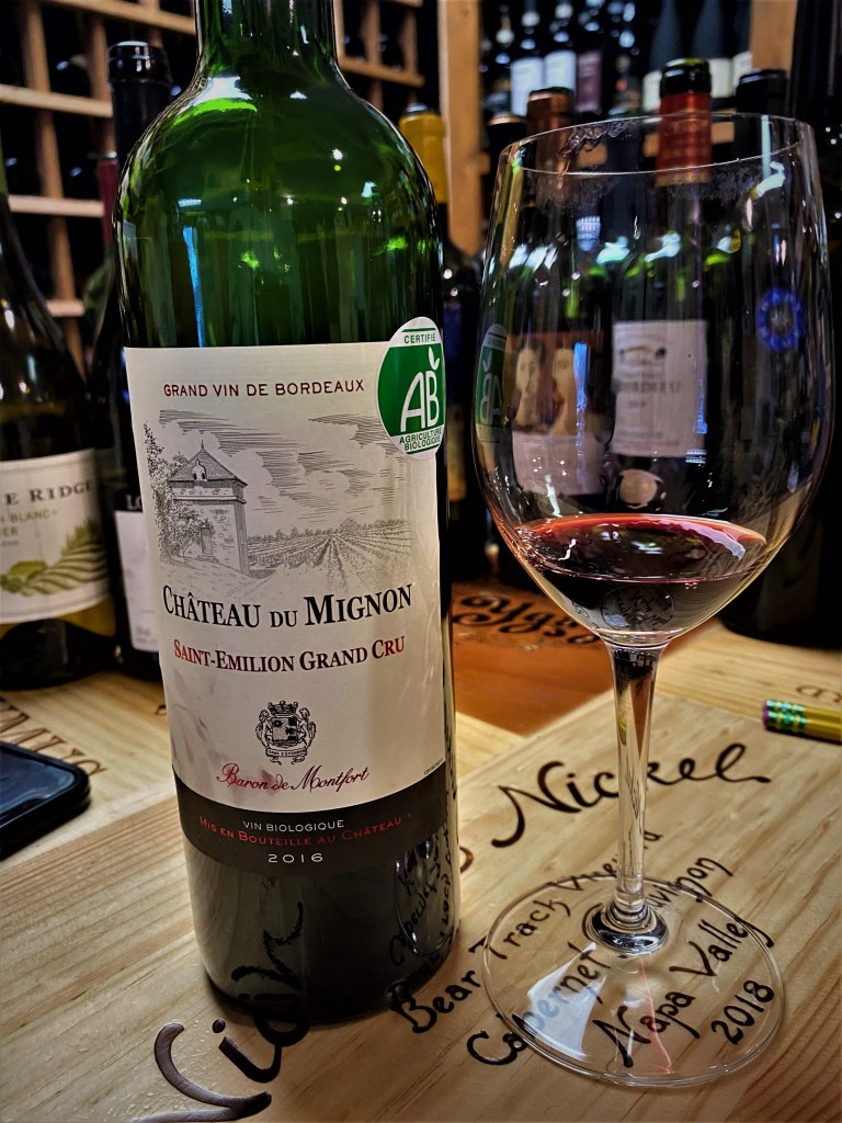 We then had Baron de Montfort Chateau du Mignon Saint-Emilion Grand Cru 2016. The property is a family-owned estate and the Baron also owns three estates that he manages with his niece Anne de Foucauld, Countess Bertrand de Sercey; of which they have sixteen hectares in Saint-Emilion Grand Cru and fifty hectares in the Cotes de Castillon. The wine is a blend of seventy percent Merlot, fifteen percent Cabernet Franc and fifteen percent Cabernet Sauvignon. The average age of the vines are thirty-five years of age, grown using organic techniques and the ground is limestone and clay. They use machine harvesting and a mix of cement vats, Stainless Steel and oak barrels, of which twenty percent are new. Black fruits dominate this wine, but with a silkier palate from being predominately Merlot and then a nice medium finish ending with terroir.