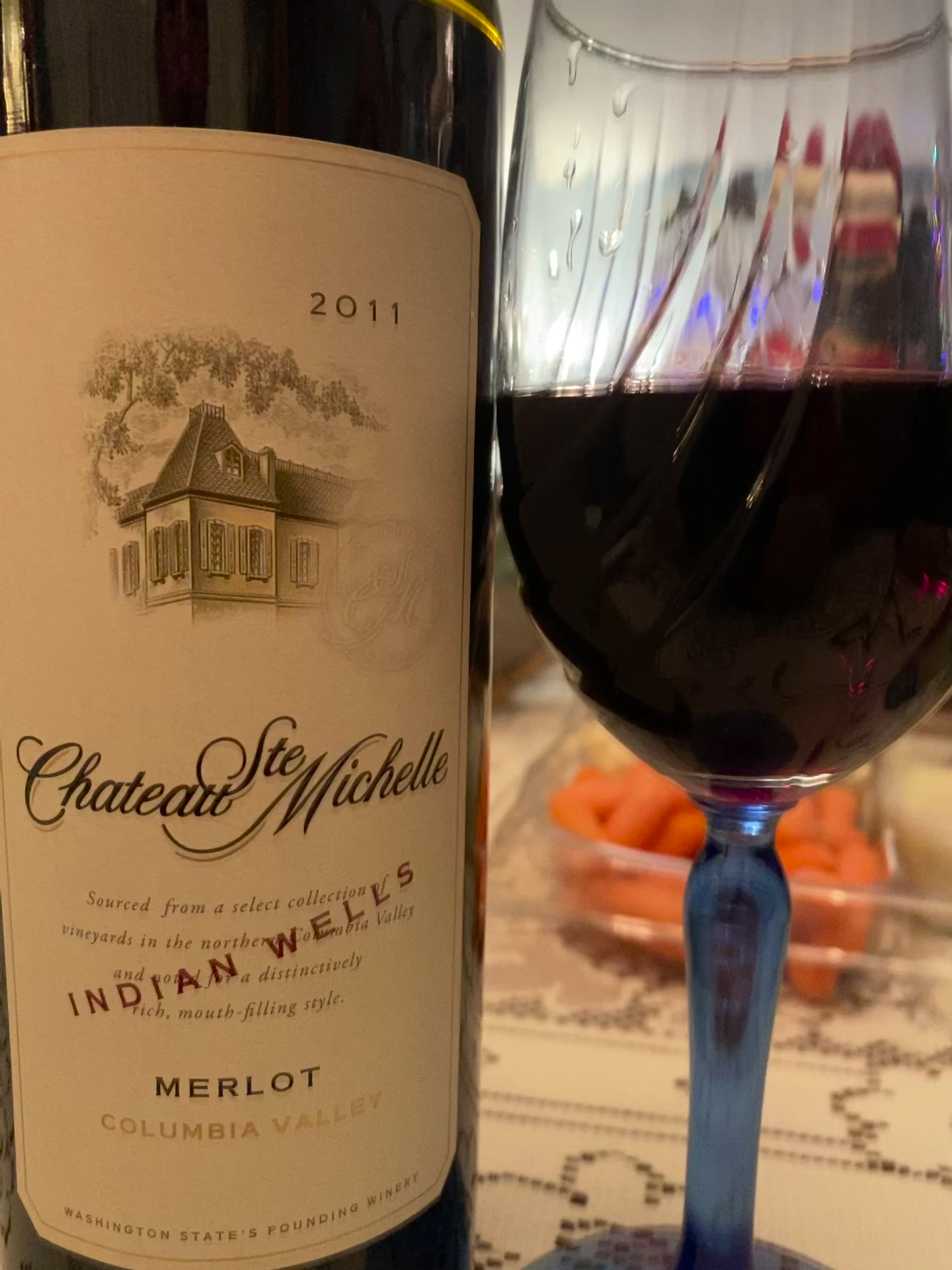 When we finally had the dinner portion of the buffet set up, a continuation of yesterday’s fine meal. Imagine having a big gathering and getting to serve leftovers, but the food was secondary, and there was still more revelry surrounding the holiday and the November birthday honorees. I had no problems enjoying a plate full of leftovers, though by the end of the week, if there is still some, I may not be as enthusiastic (though it will be good training as I get entrenched in being a retiree). The last of the wines that I opened was Chateau Ste. Michelle Merlot Indian Wells Vineyard 2011. Chateau Ste. Michelle is the oldest and one of the most prestigious wineries in the State of Washington. They are known for their Cabernet Sauvignon, Merlot and Chardonnay, but are famed for their Riesling. It was founded as the American Wine Growers in 1954 by the merger of two that companies that followed the repeal of Prohibition; the National Wine Company and the Pomerelle Wine Company. The National Wine Company had planted Vitis vinifera grapes in the Columbia Valley, and under the consultation of Andre Tchelistcheff they planted even higher quality grapes in 1967. These were under the name of Ste. Michelle Vintners and the first wines released were Cabernet Sauvignon, Pinot Noir, Semillon and Grenache. This wine had fifteen percent Syrah blended in with the Merlot and was aged for eighteen months in a mix of French and American Oak, both new and used. The nose was soft on this mature wine, and there was still black fruits and some vanilla, with a nice medium finish of terroir.